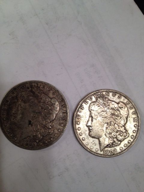 2 MORGAN SILVER DOLLARS, 1901 & 1902