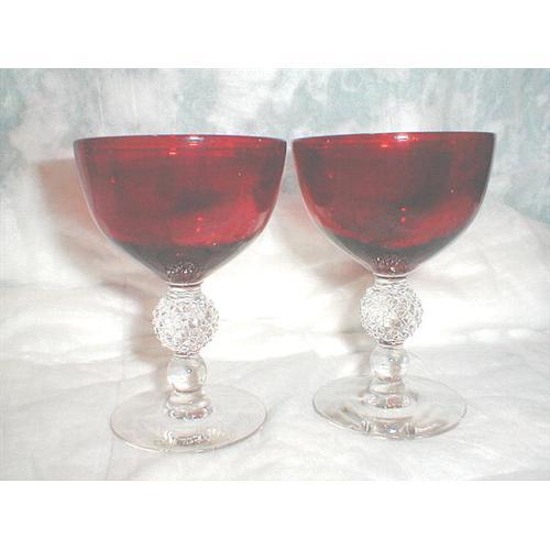 HERE FOR SALE ARE 2 BEAUTIFUL MORGANTOWN SPANISH RED COCKTAIL GOBLETS THAT ARE IN WONDERFUL CONDITION WITH NO CHIPS, CRACKS, CLOUDINESS, SCRATCHES, ETC. EACH GOBLET MEASURES 4 1/4 IN. TALL AND 3IN. IN DIAMETER.