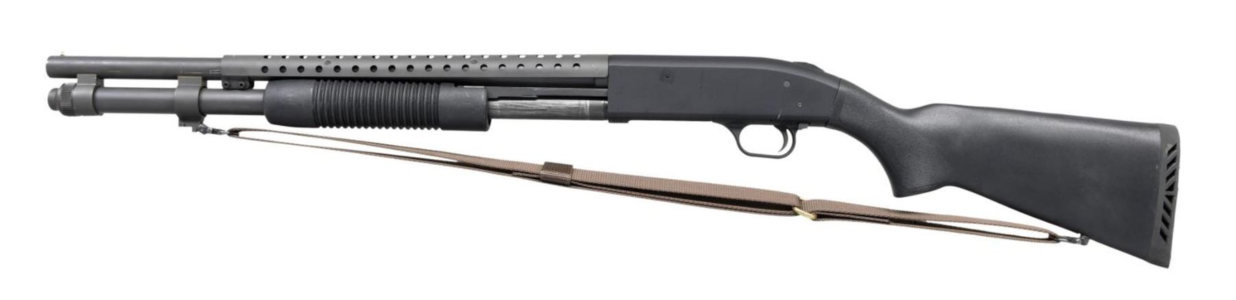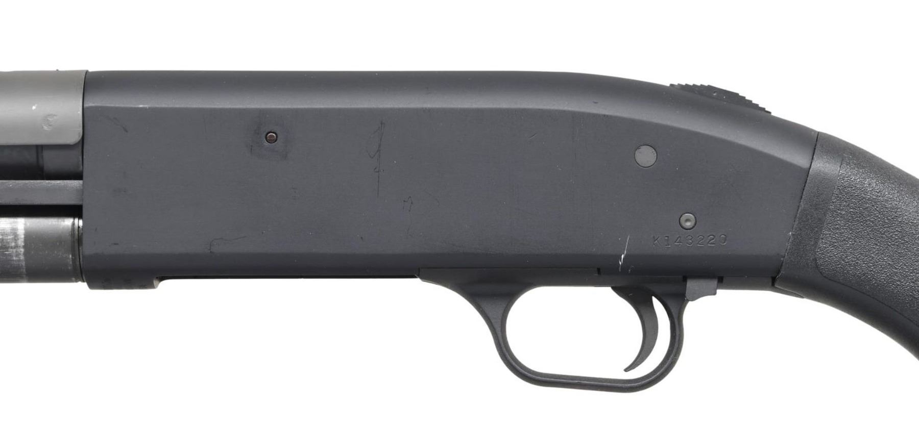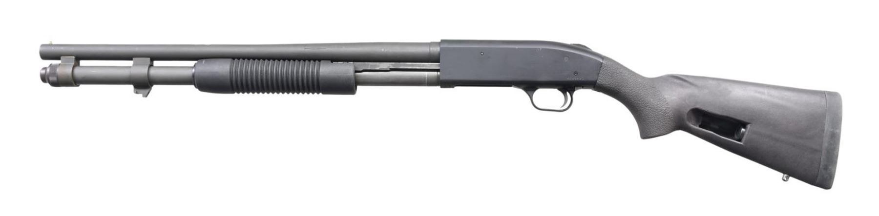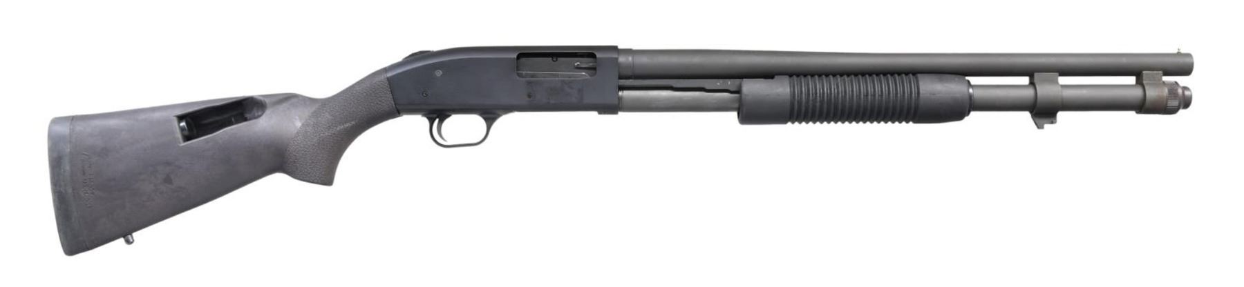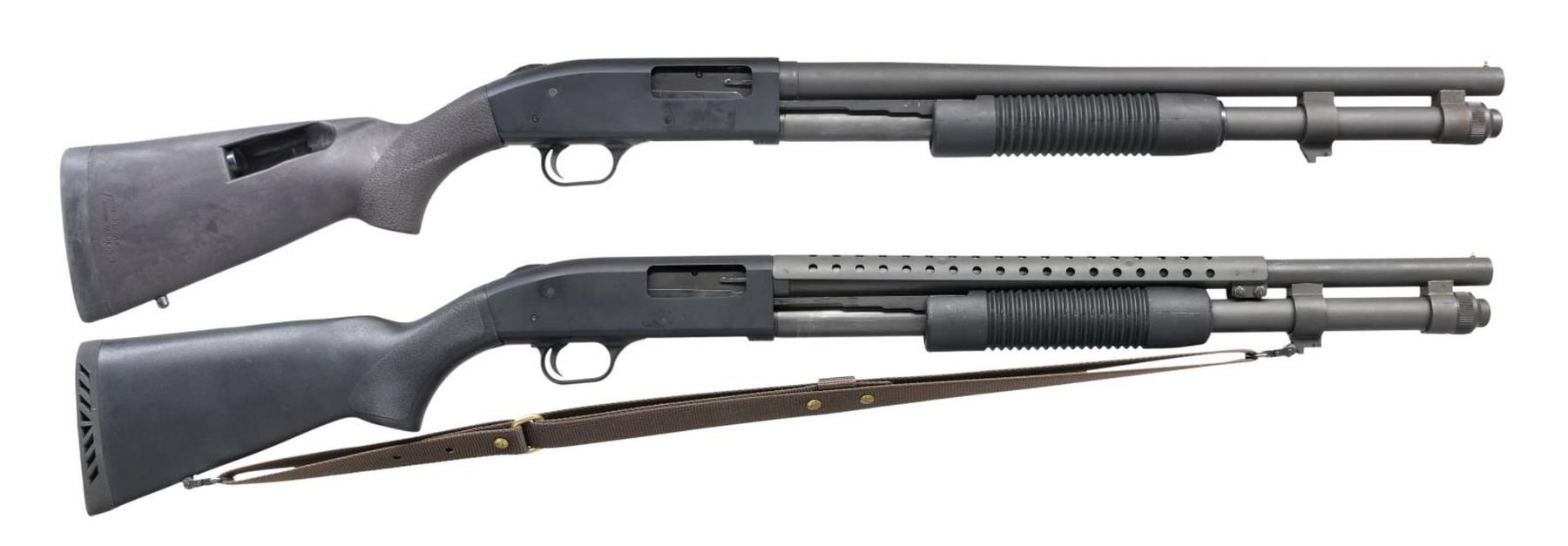 BOTH: Cal. 12 Ga., 2 3/4" & 3".. Bbl. 20" w/ cyl. bore & brass front bead. 1) S# K359820. Synthetic forearm & Davis M500 buttstock w/ 2 cartridge tubes. UNATTACHED ACCESSORIES: matching numbered box. CONDITION: very good matte finish w/ cycling wear & light marks. Very good stock set with scuffs. Bore shows residue buildup. 2) S# K143220. Heat shield. Matte finish. Black synthetic stock set. Nylon sling on QD swivels. CONDITION: very good metal with a few noticeable scratches that pierce the finish. Very good stock set w/ light marks. Bore appears parkerized & dark. PROVENANCE: From the Working Reference Collection of Military Arms Instructor, Master Sergeant Vincent Pestilli. (23-7590, 23-7591/MD). BOTH MODERN. $600-800.