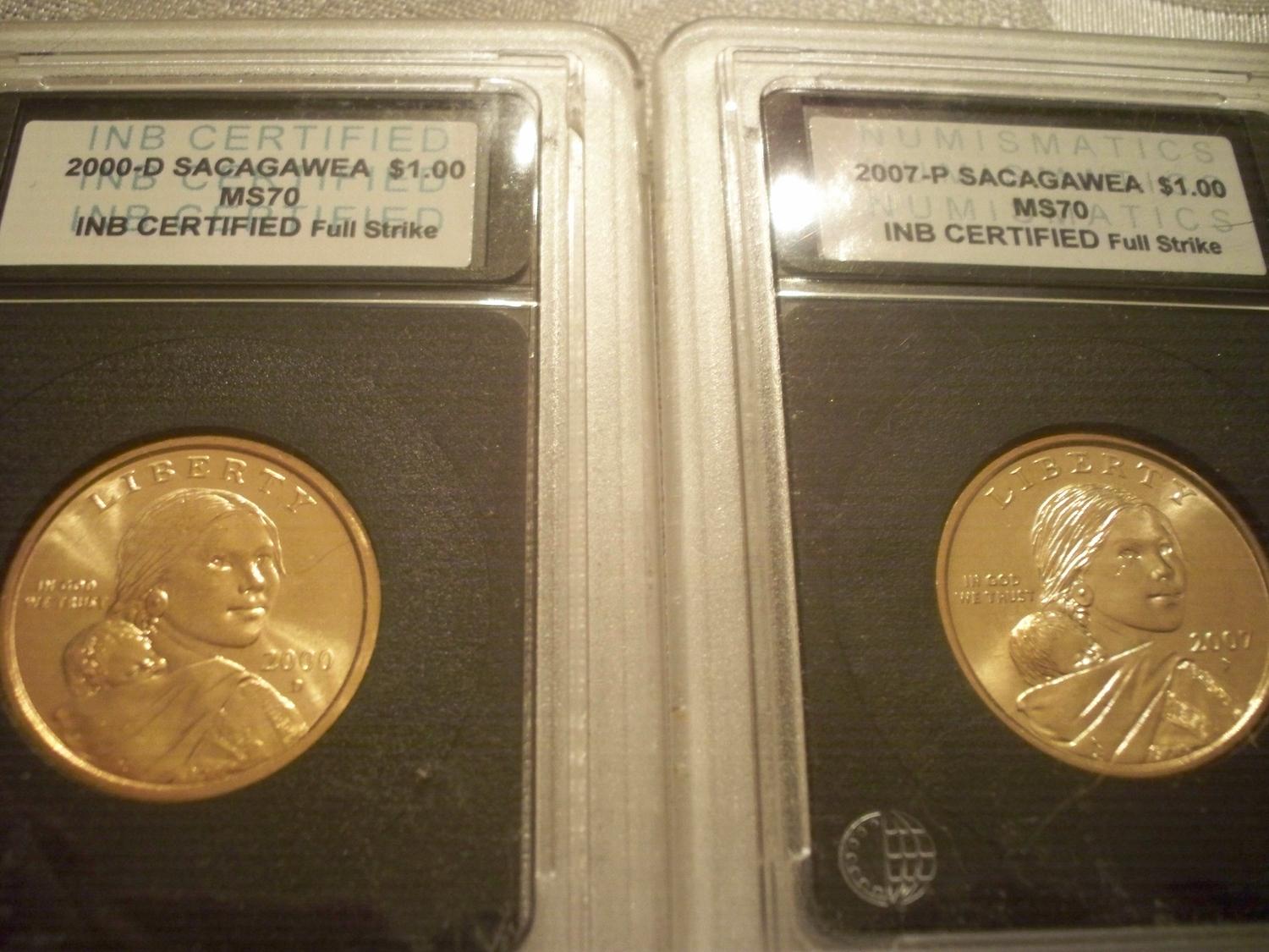 2 MS-70 Sacagawea Dollars, 2000-D, 2007-P