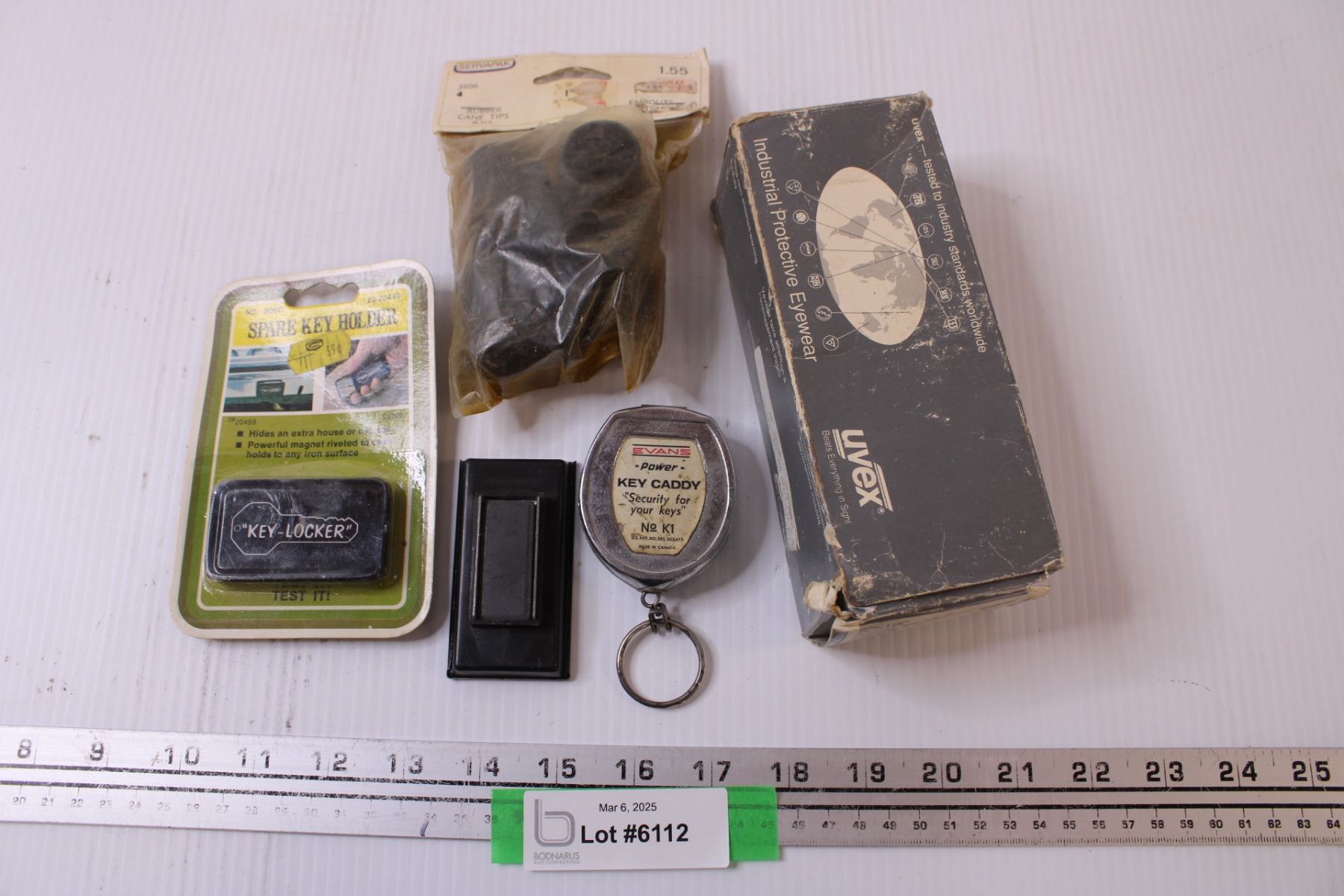 2 Magnetic Key Holders - Cane Tips - Safety Glasses and Evans Retractable Key Caddy