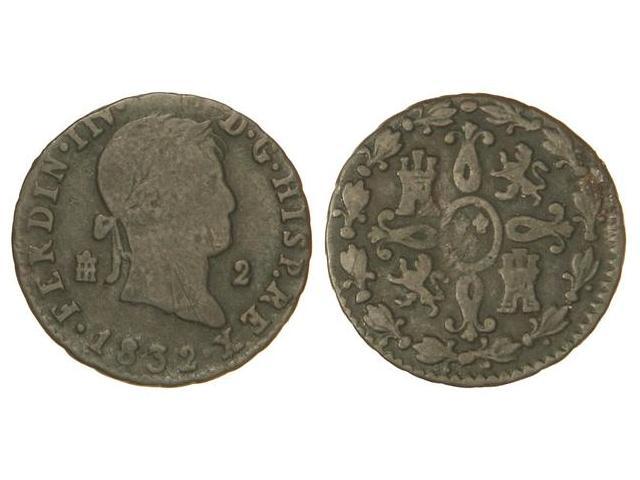 2 Maravedís. 1832. SEGOVIA. Error: FERDIN IIV. Cal-1734. BC+.
