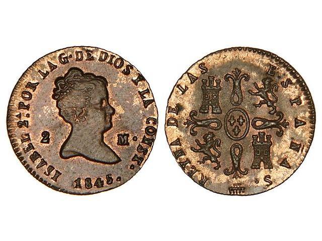 2 Maravedís. 1845. SEGOVIA. Restos de color y brillo originales. Cal-557. EBC.