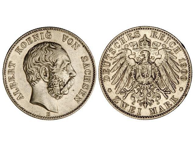 2 Marcos. 1900-E. ALBERTO I. SAJONIA. AR. (Pequeños golpecitos en anverso). KM-1245. MBC+.