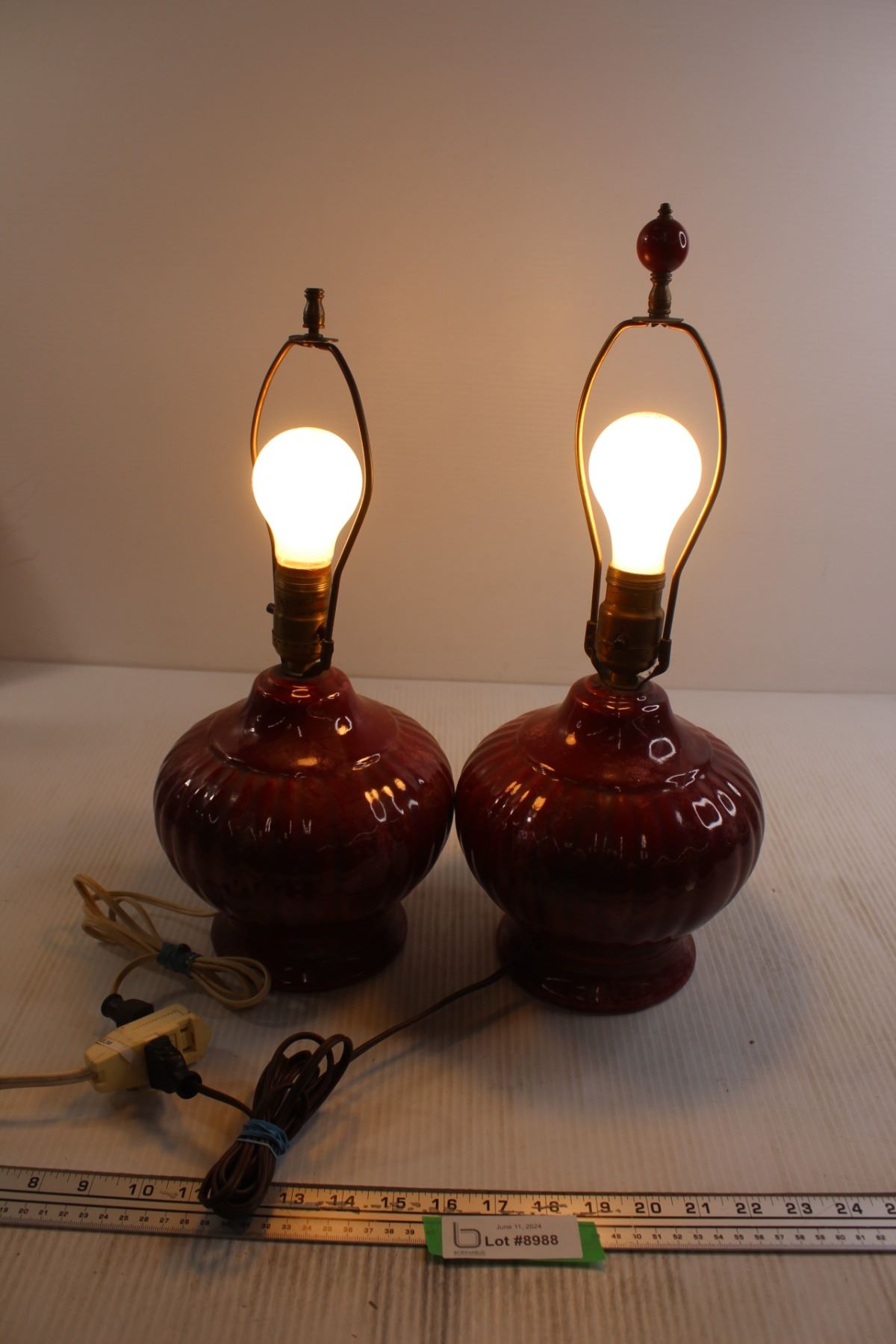 (2) Maroon Lamps - Works
