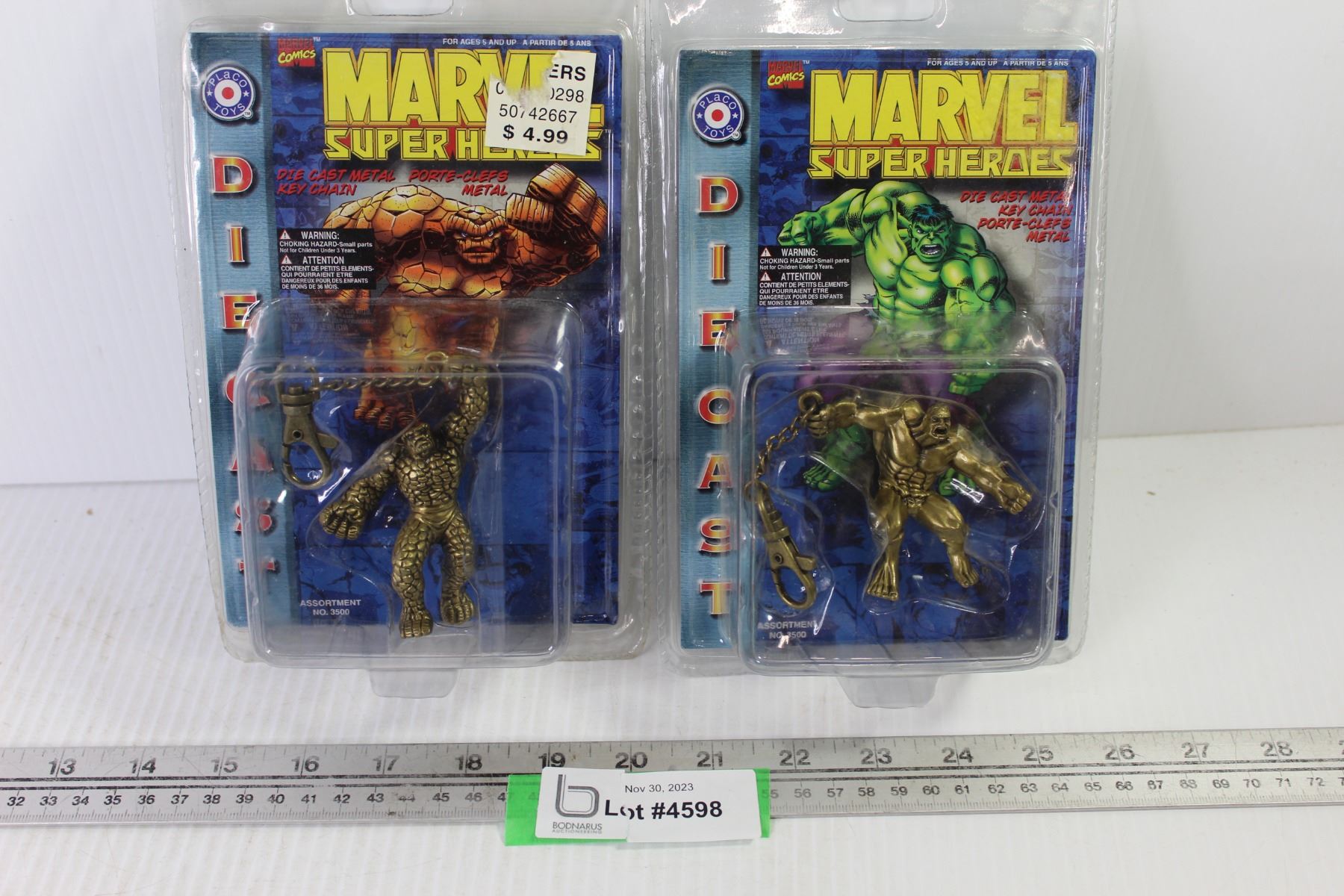 (2) Marvel Comics - Diecast Action Figure Key Chains - The Hulk - The Thing (NIB)