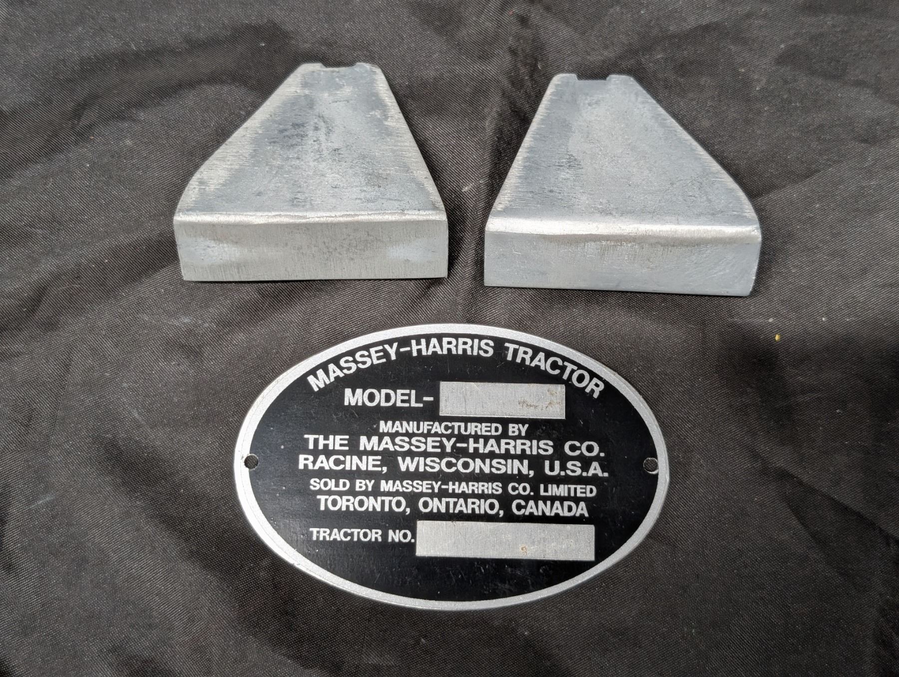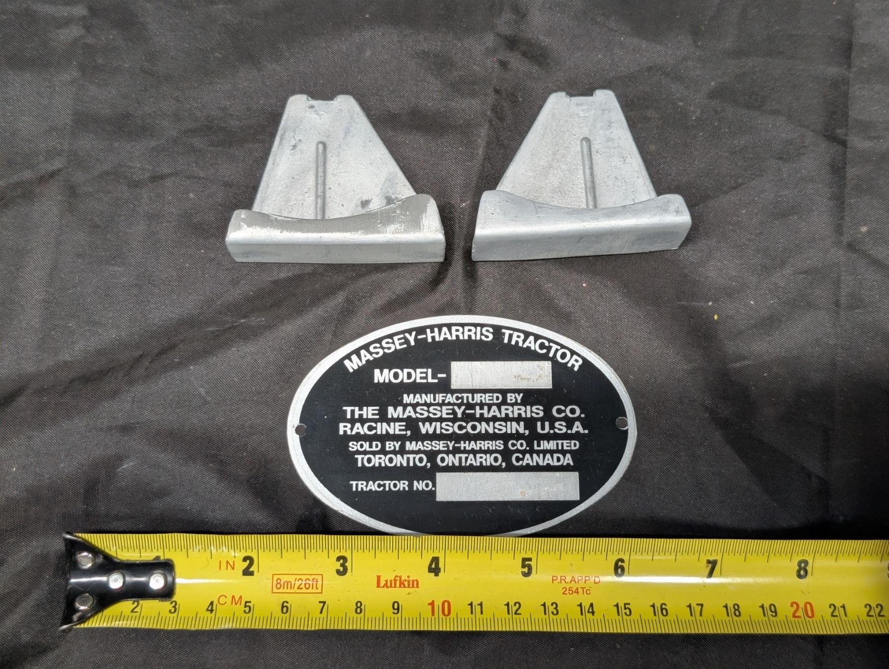 (2) Massey Harris Mounting Brackets Holder Plus Blank Serial Number Tag