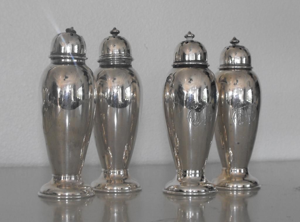 (2) pr. matched s/p shakers, one engraved one not.