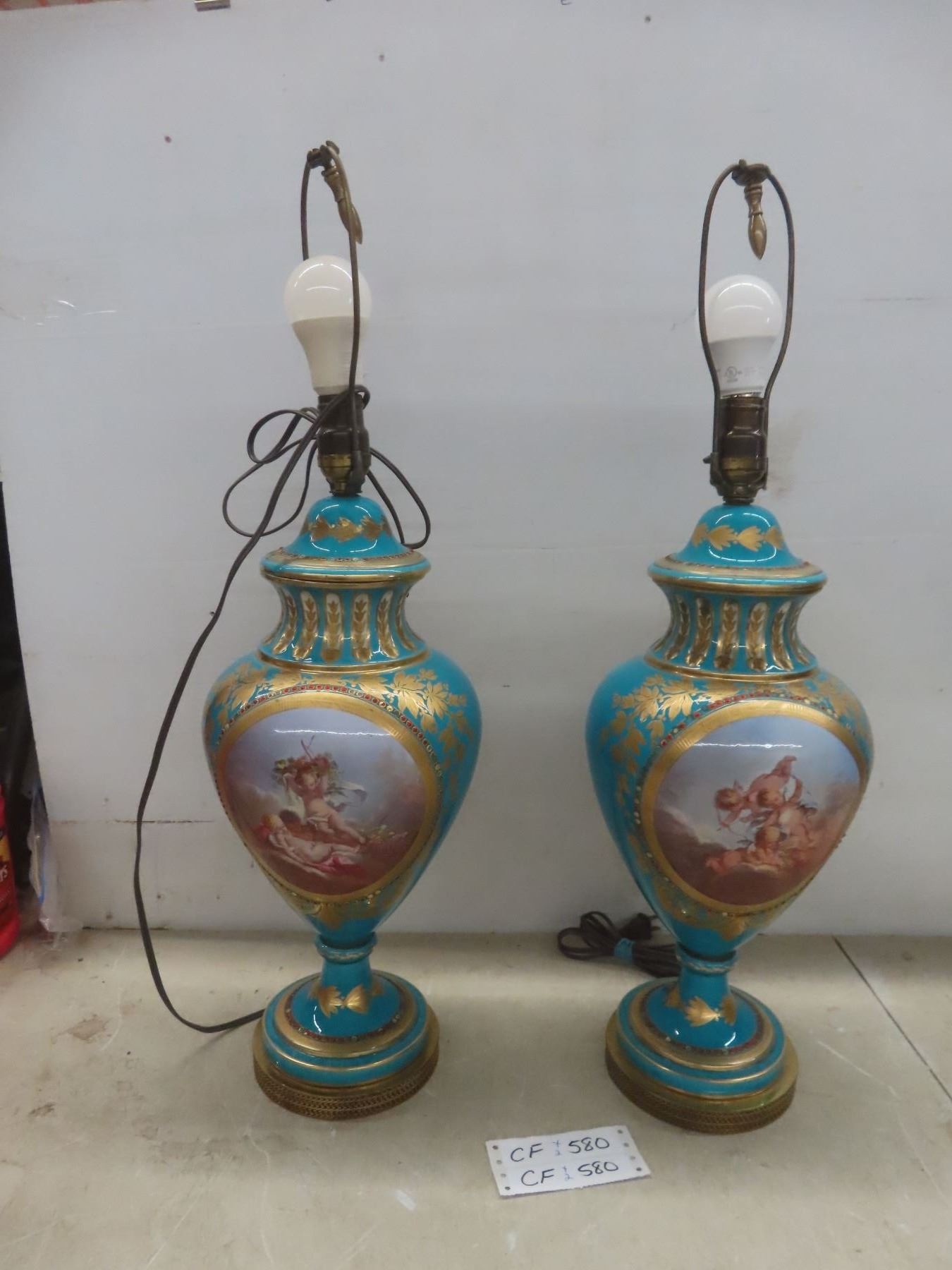 2 Matching Porcelain Vase Lamps 27'' H No Shades