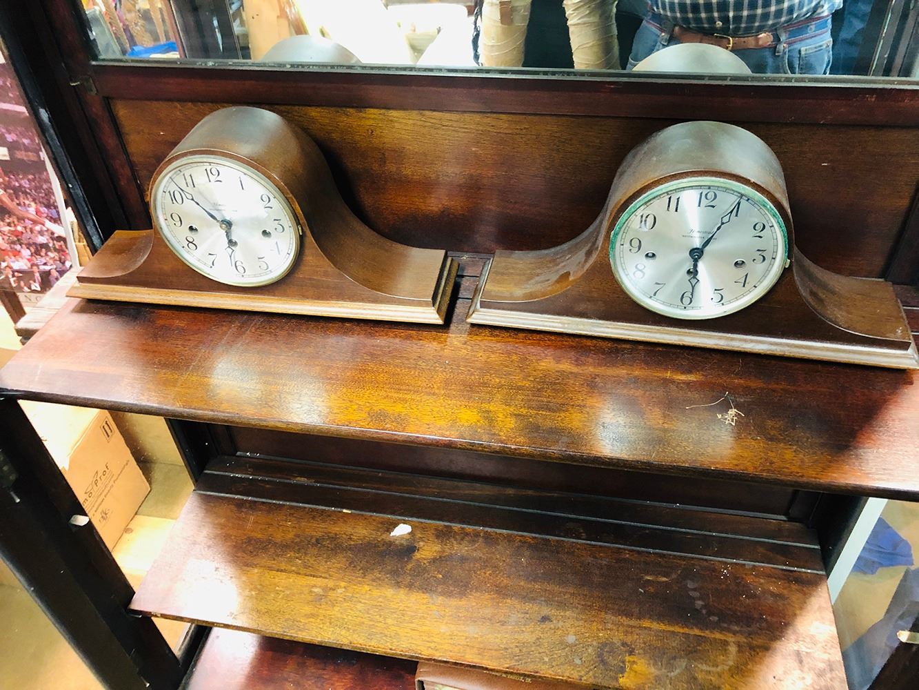 Matching pair of Seth Thomas Westminster chimes mantel clocks, mahogany cases, very unique pair with silver dials.