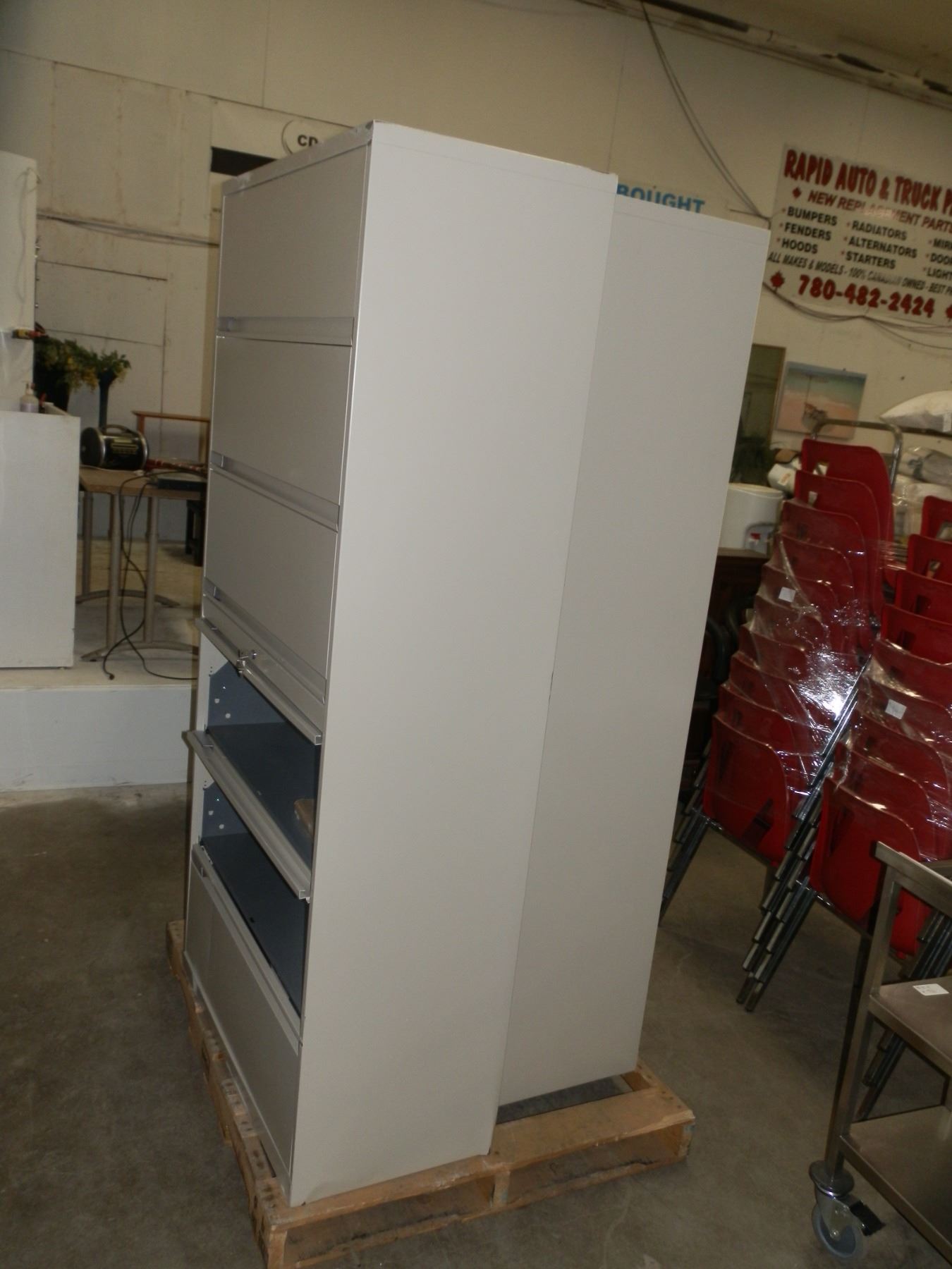 2 Meatal Storage Cabinets both come with keys, some damage as seen in the photos....78" H 18" Deep 3 feet W.....both are the same size....
