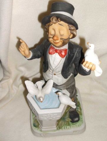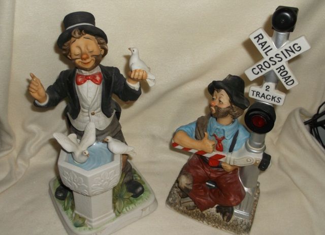 Railroad crossing clown approx 6" x 4" x H15" Clown at Bird Bath with Birds approx 6.5" x 6" x H 14" 1995 no chips or cracks