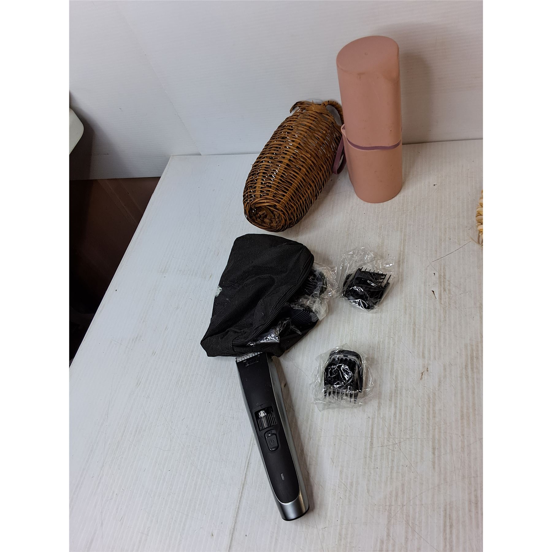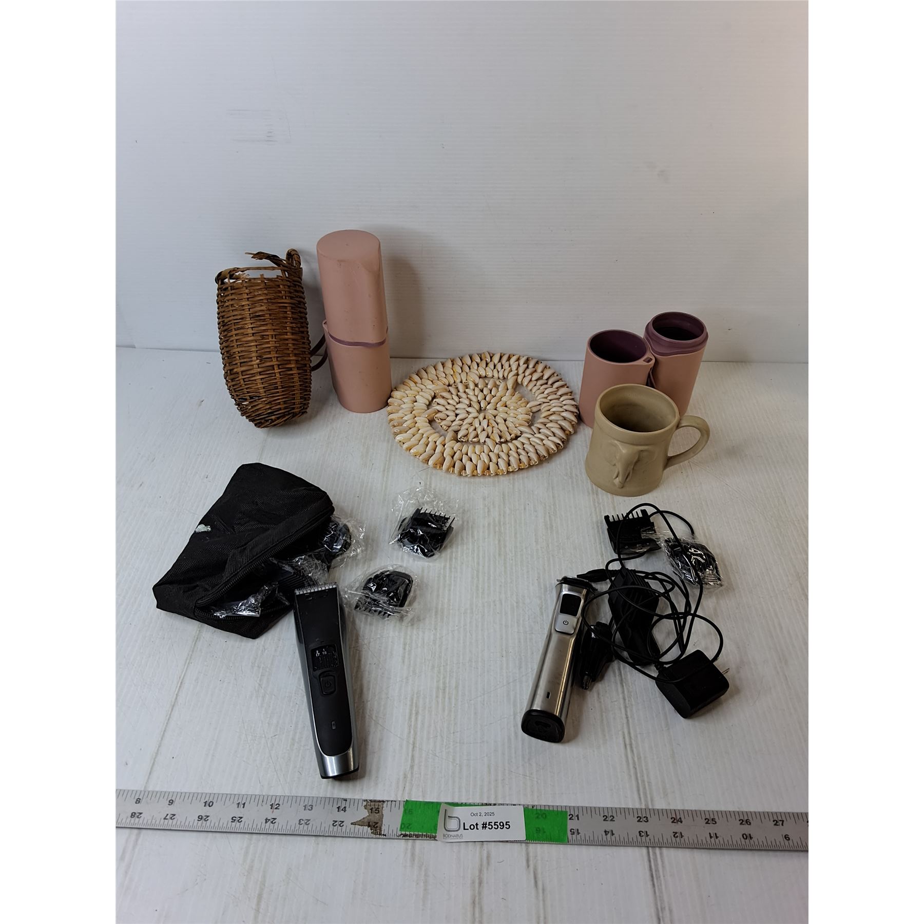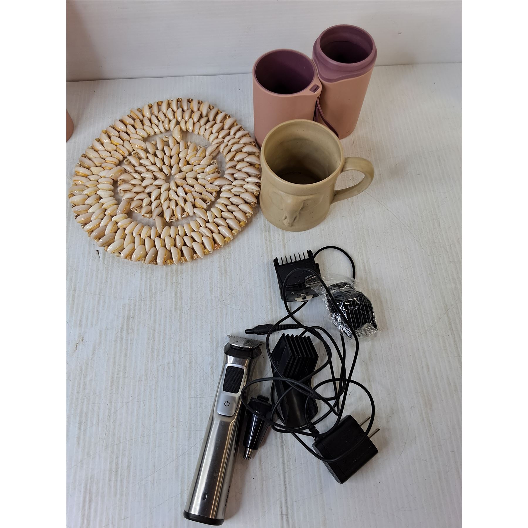 (2) Men's Razors- Power On, (2) Bathroom Tumblers, Elephant Mug, Misc.
