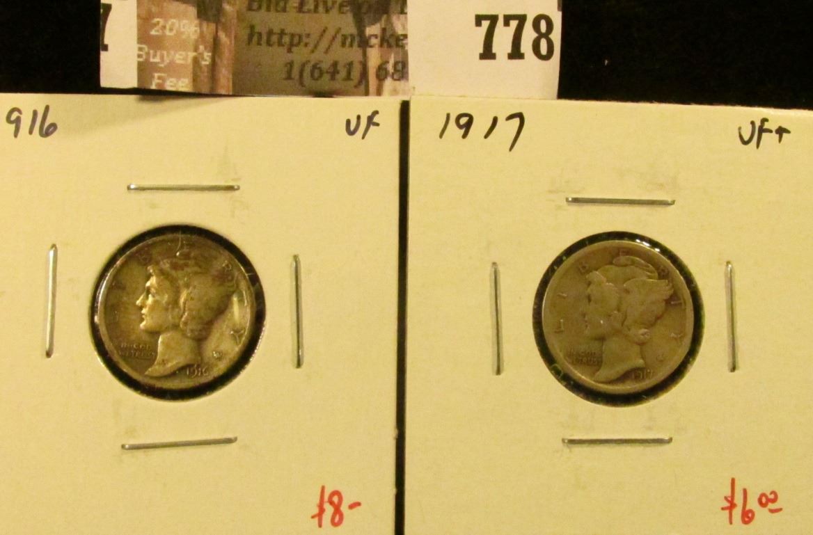 (2) Mercury Dimes, 1916 & 1917, both VF, value for pair $14