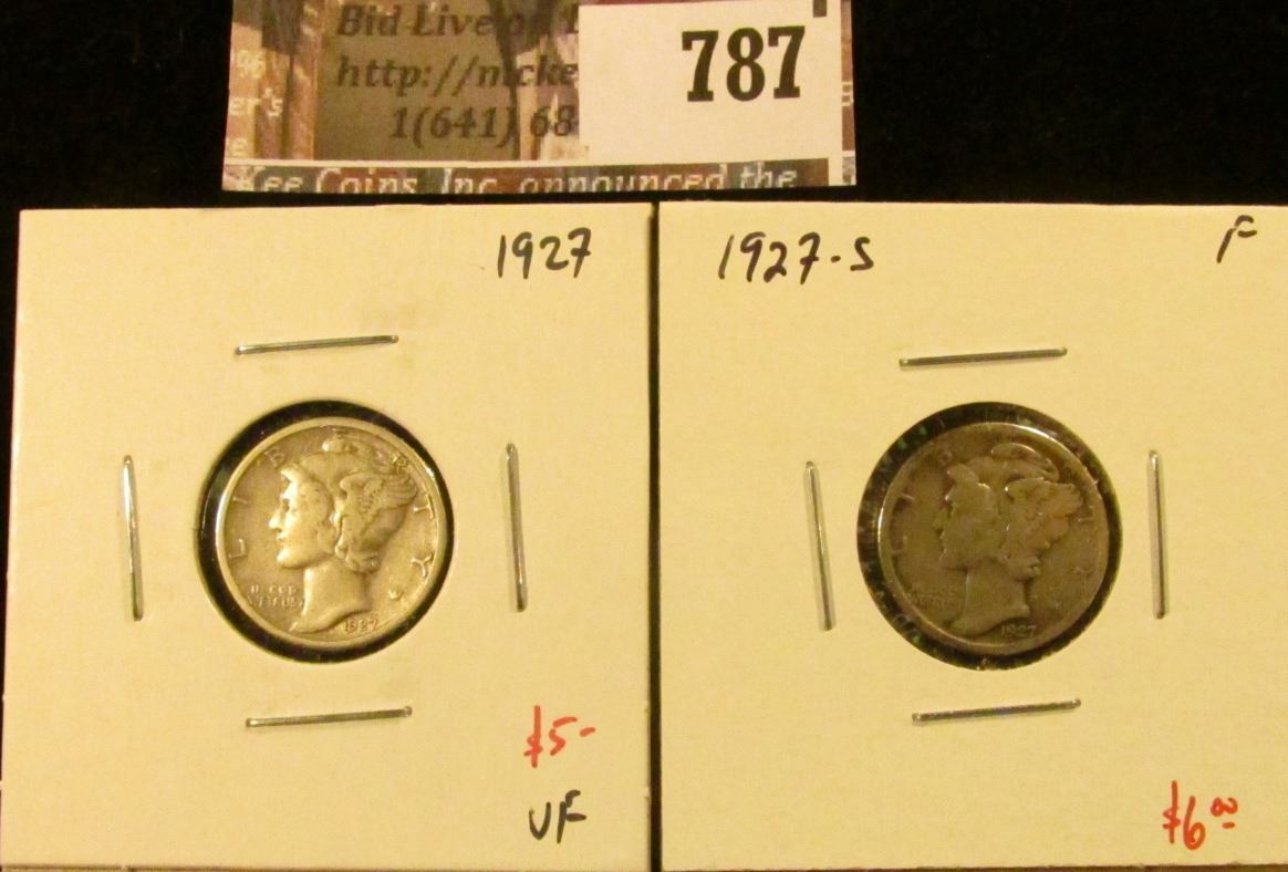 (2) Mercury Dimes, 1927 VF, 1927-S F, value for pair $11