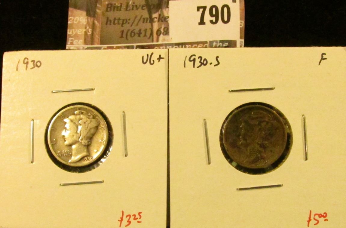 (2) Mercury Dimes, 1930 VG+, 1930-S F, value for pair $8+