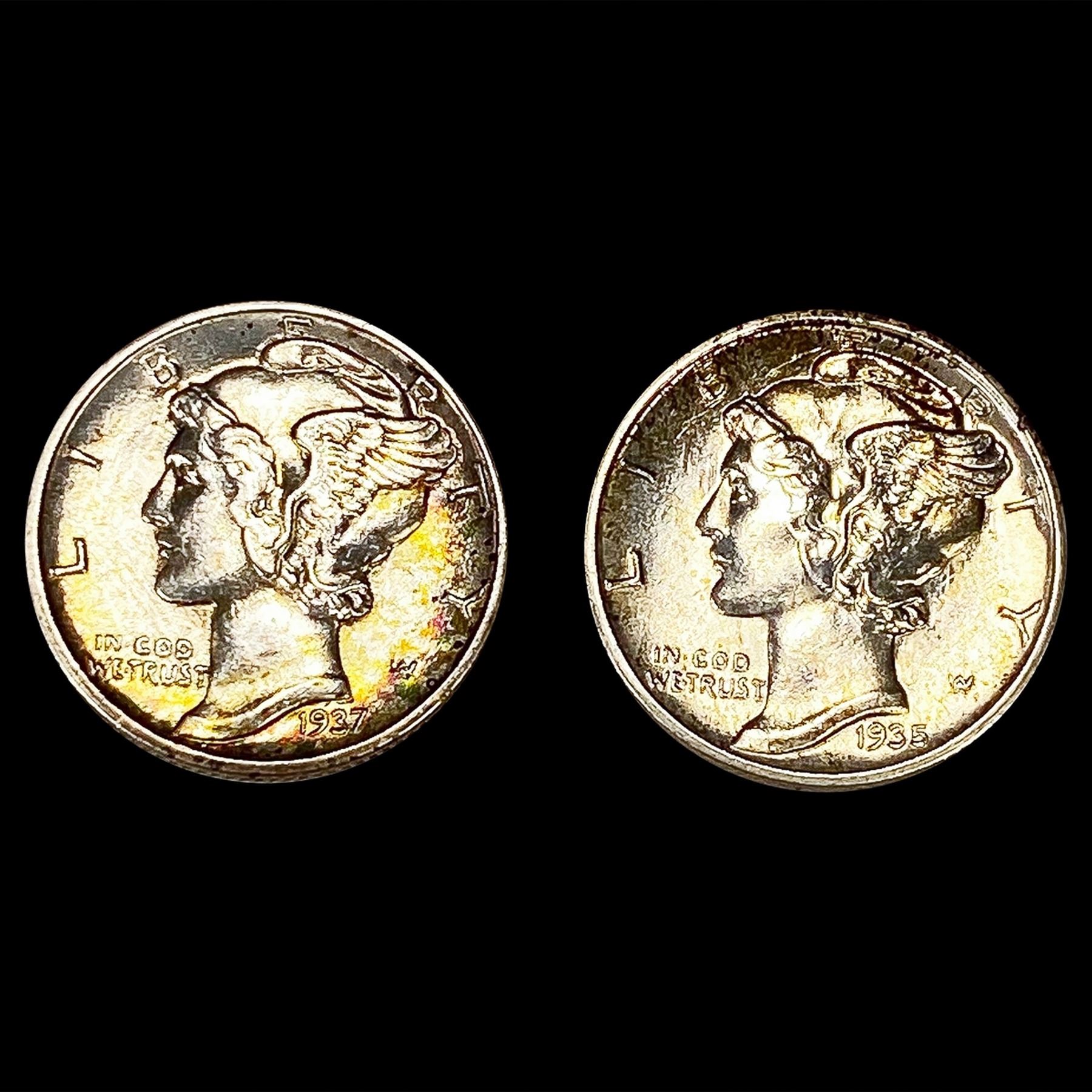 (2) Mercury Dimes (1935-S, 1937-D) CLOSELY UNCIRC