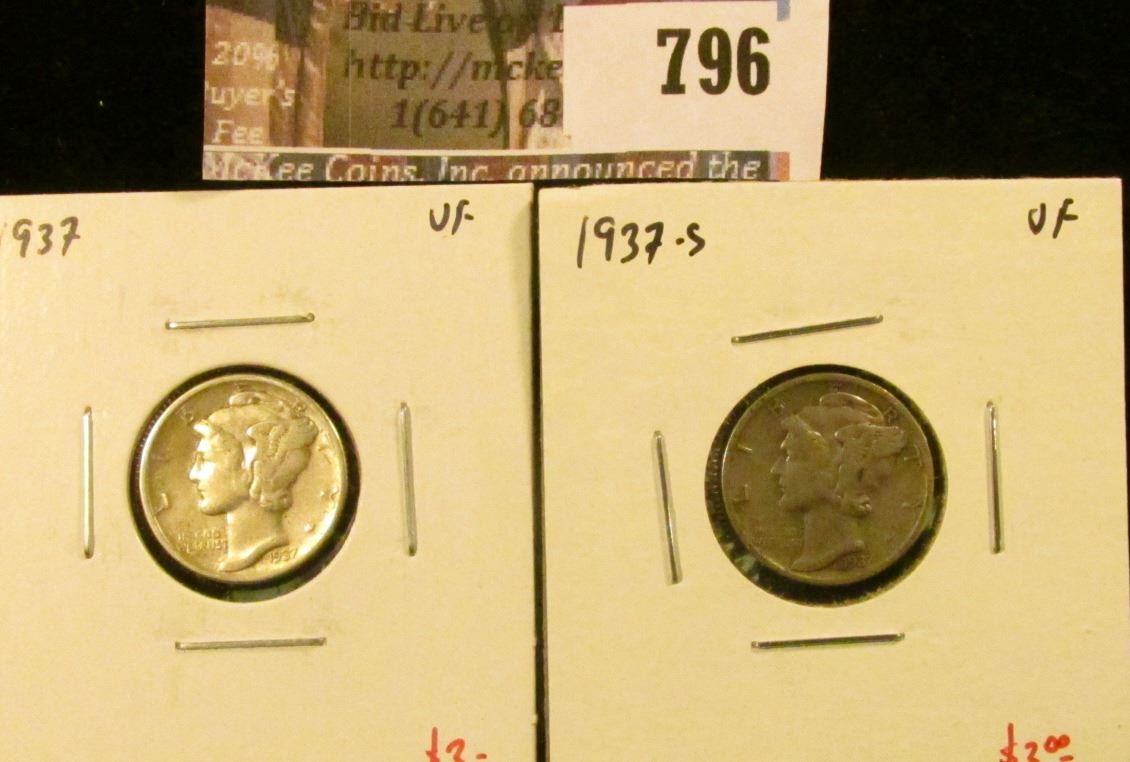 (2) Mercury Dimes, 1937 & 1937-S, both VF, value for pair $6