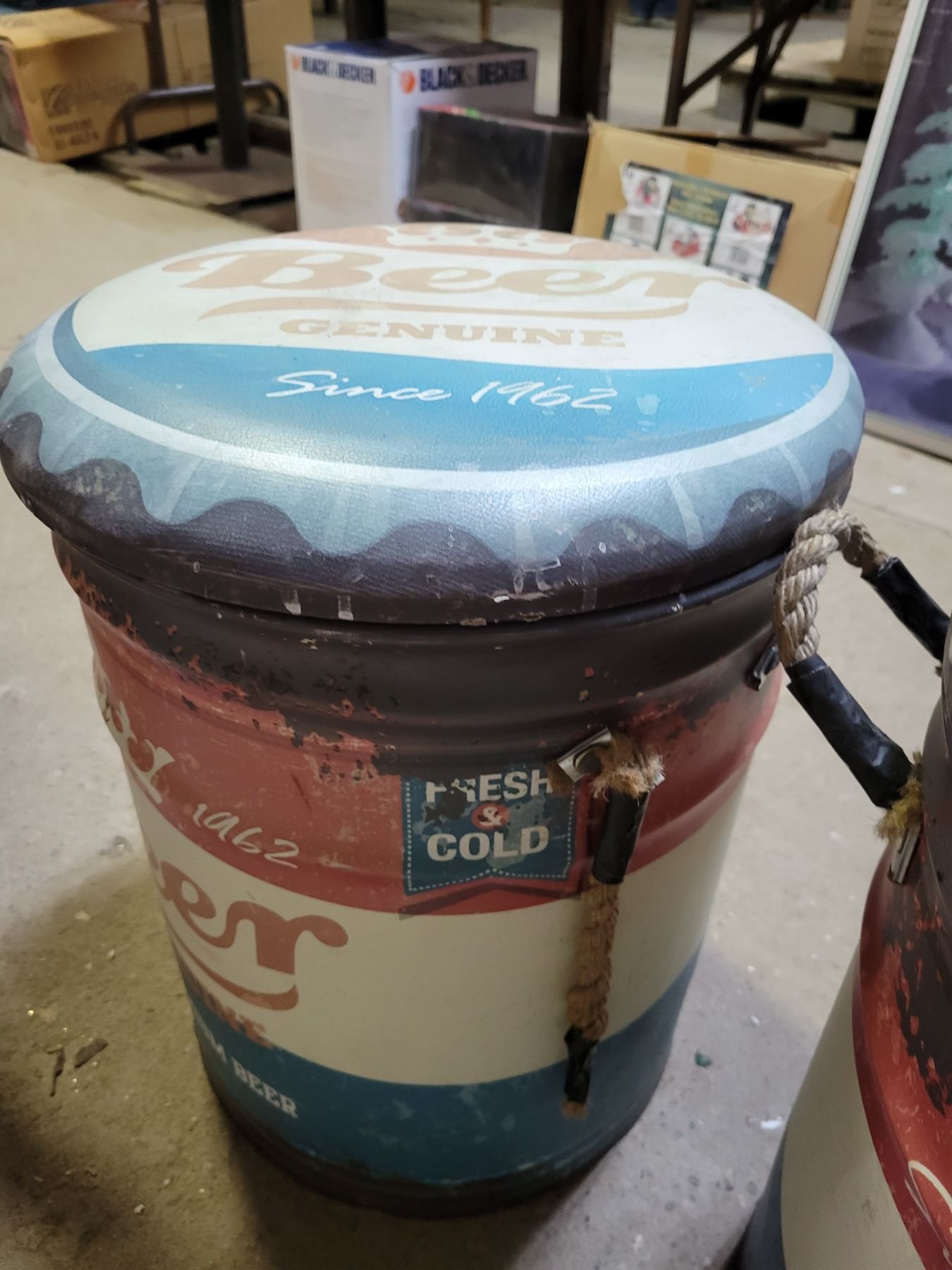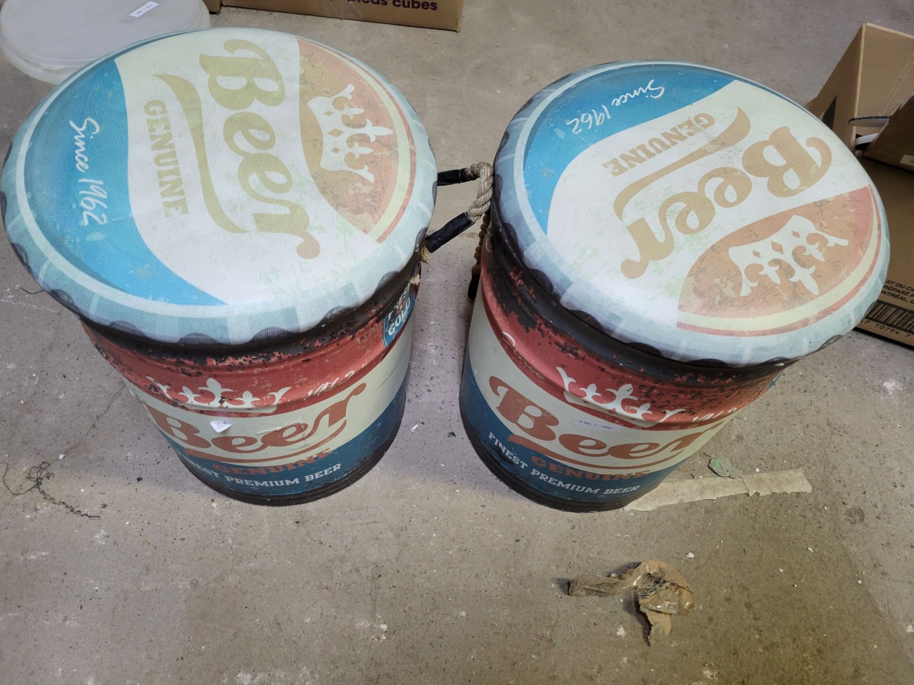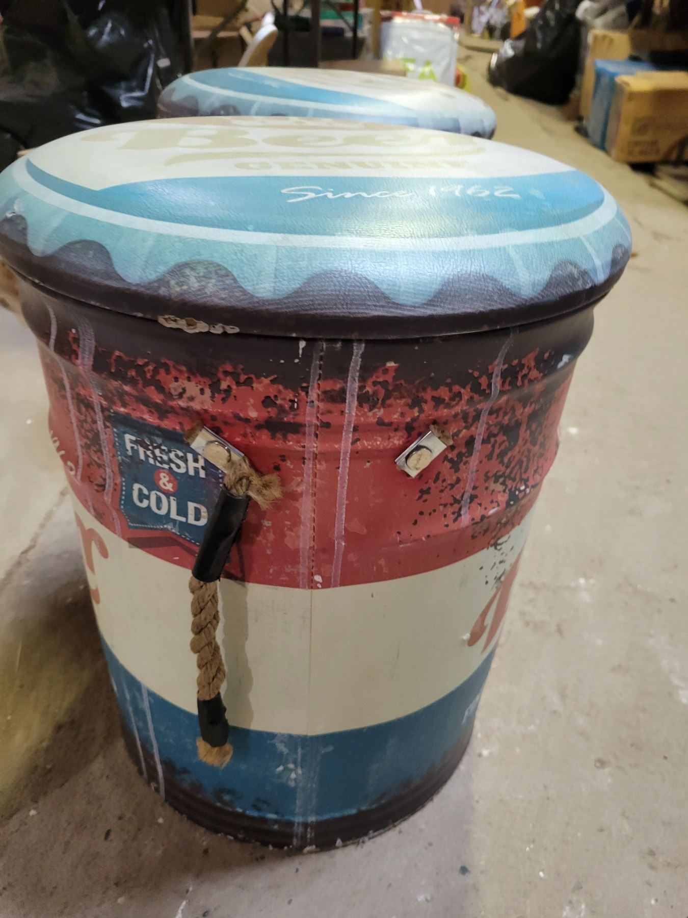 2 Metal Bar Stools with Storage & Padded seats (Needs Minor Repair - Handles)