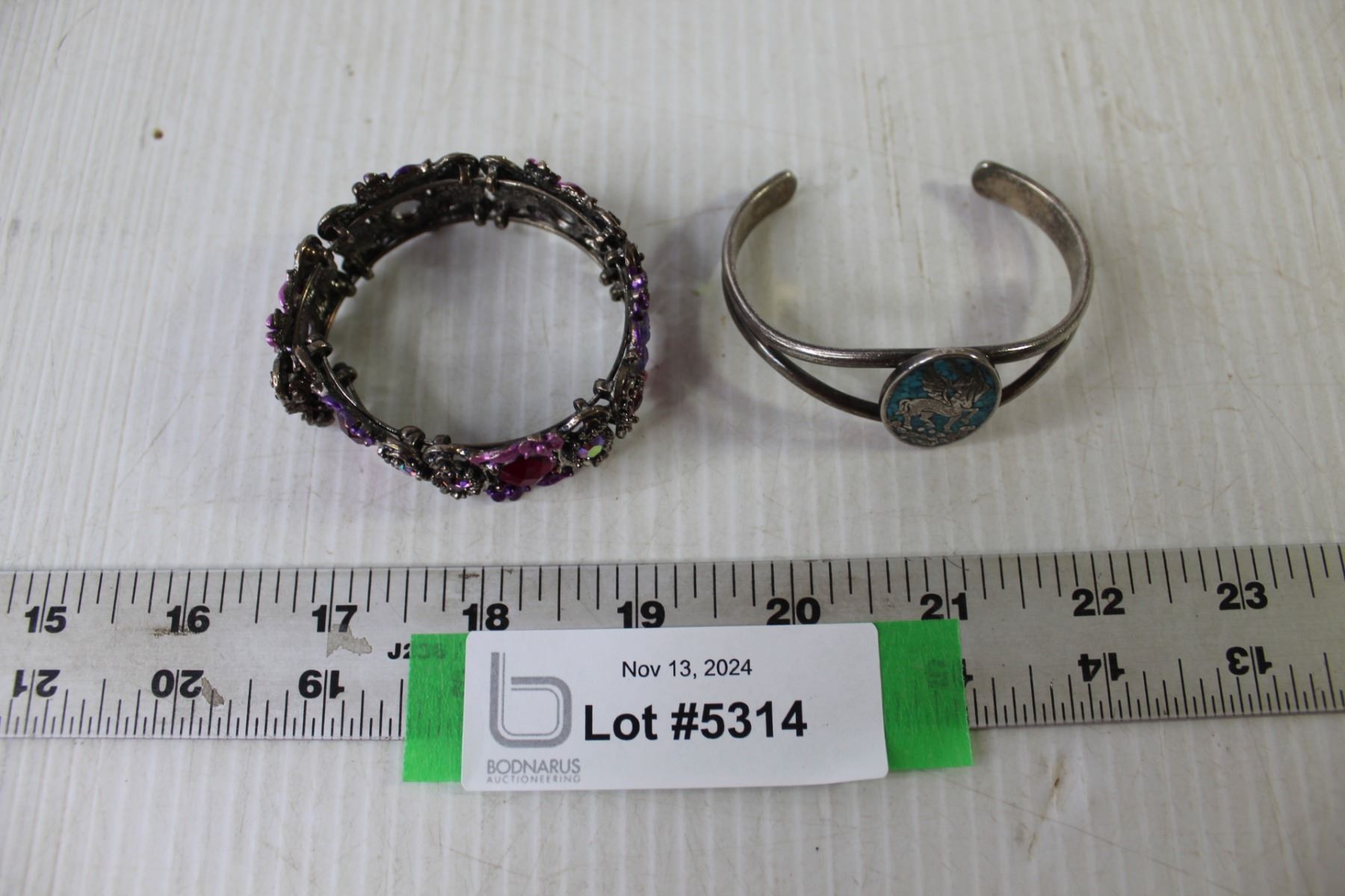 (2) Metal Bracelets (Unicorn, Purple Jewel)