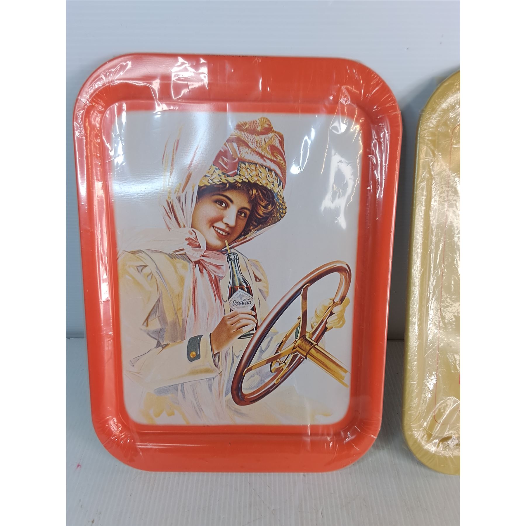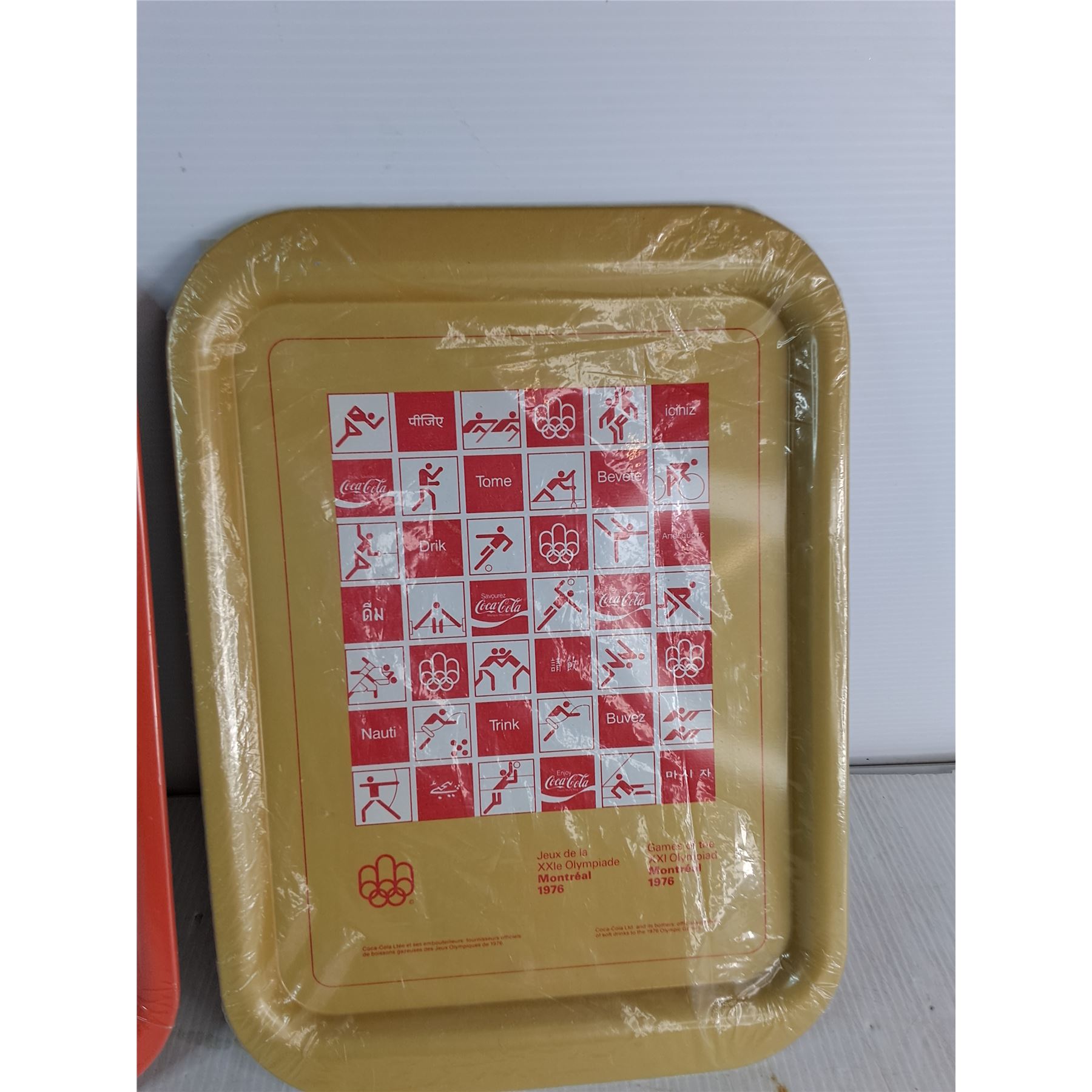 (2) Metal Coca-Cola Trays 14.10 x10.9 - Pretty Women, & Olympics Themed