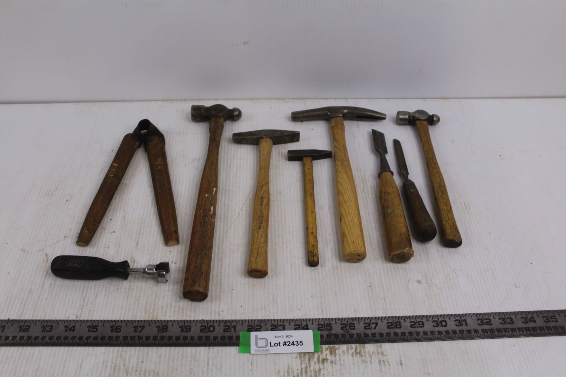 (2) Metal Files, Tack Hammer, (2) Ball Point Hammers, (2) Welding Hammers, Snap On Brake Spring Tool