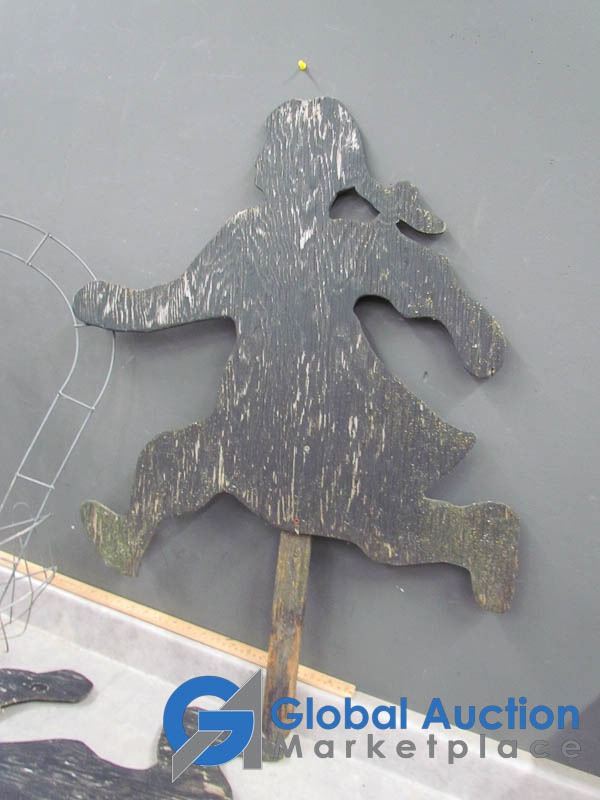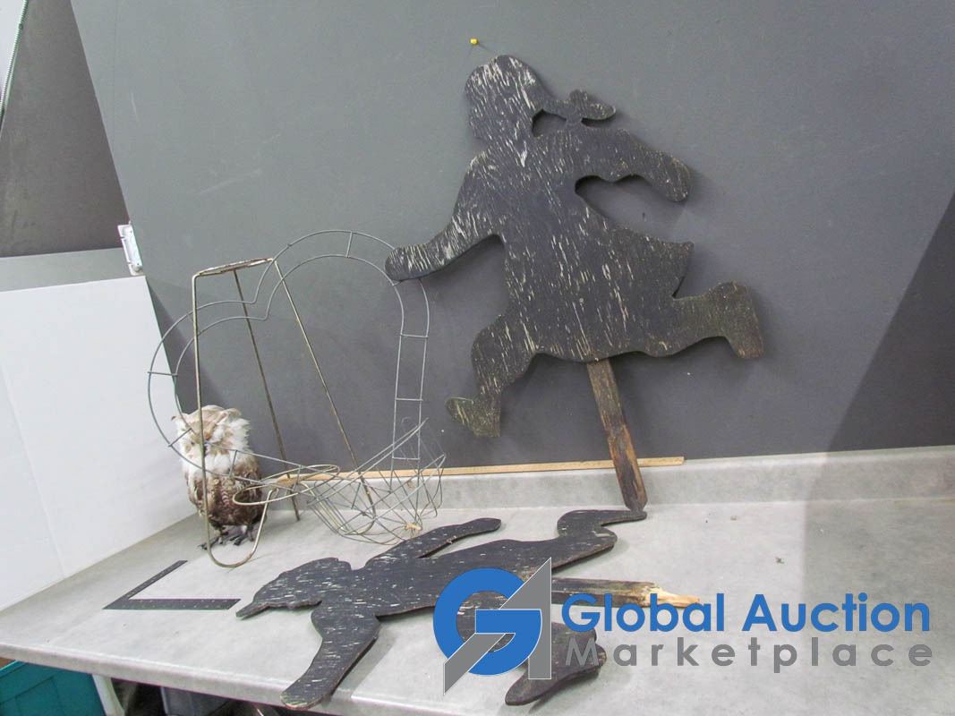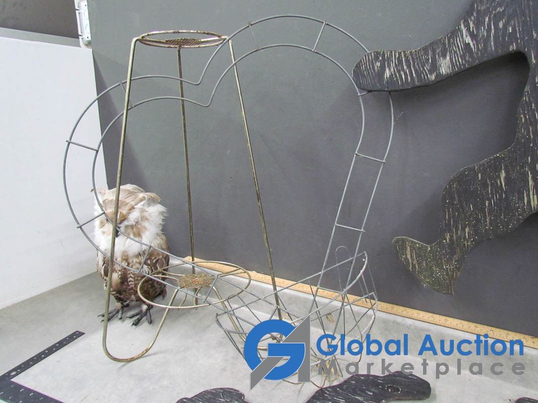 (2) Metal Plant Stands, Fake Owl and Wooden Silouettes
