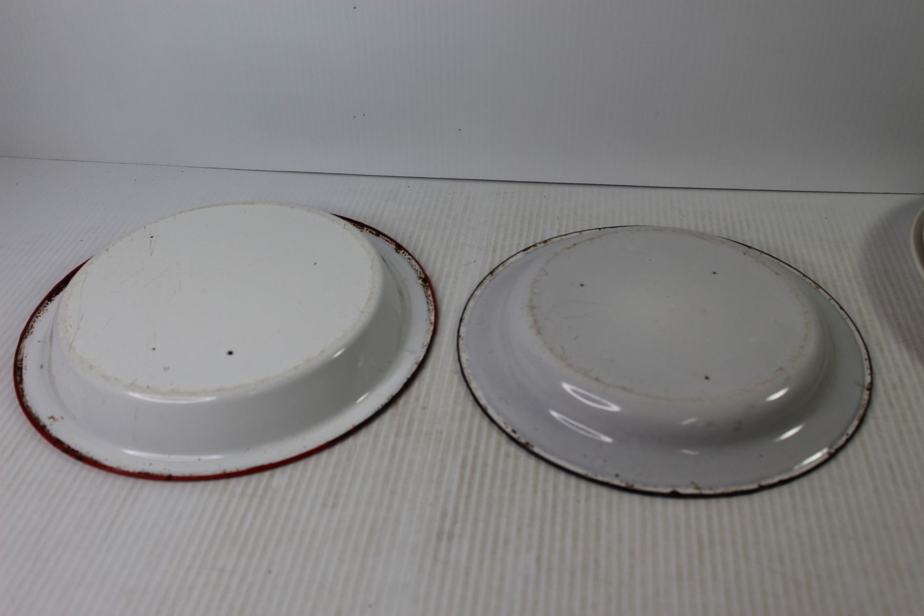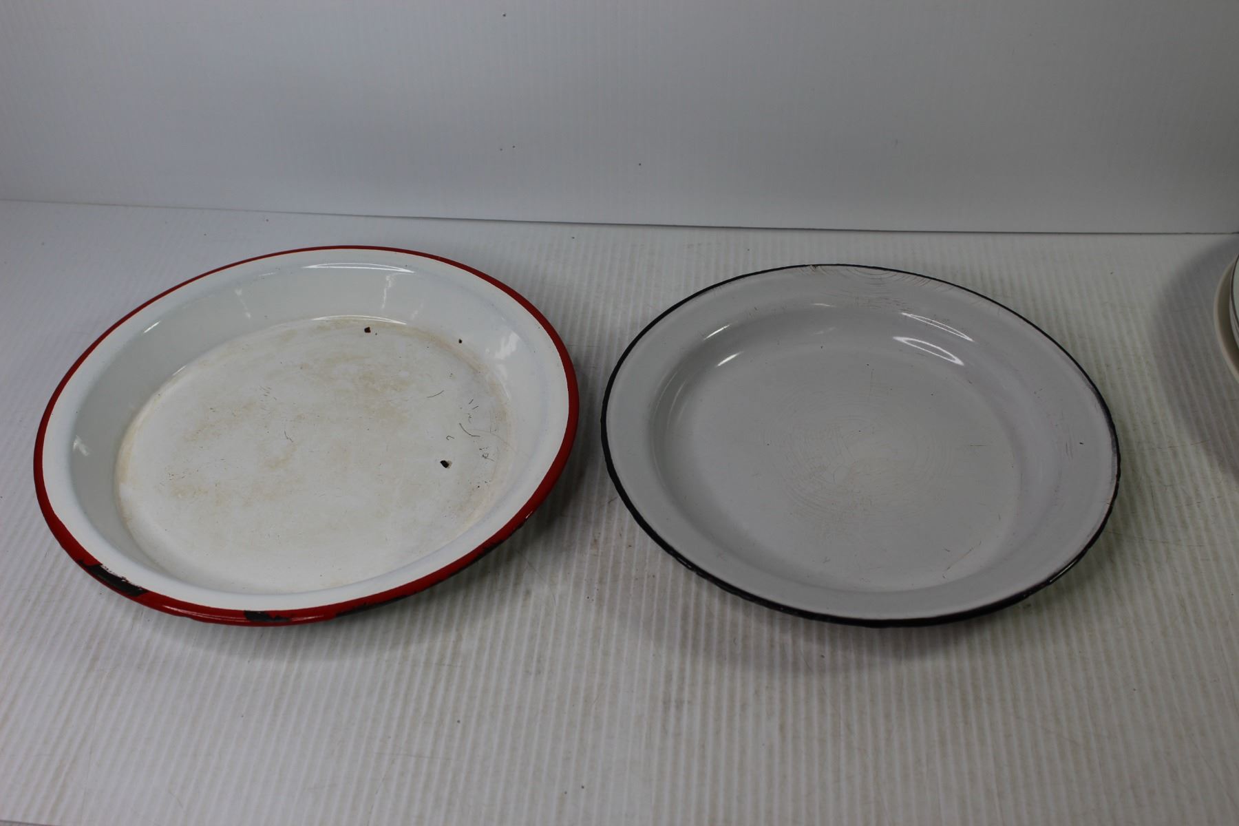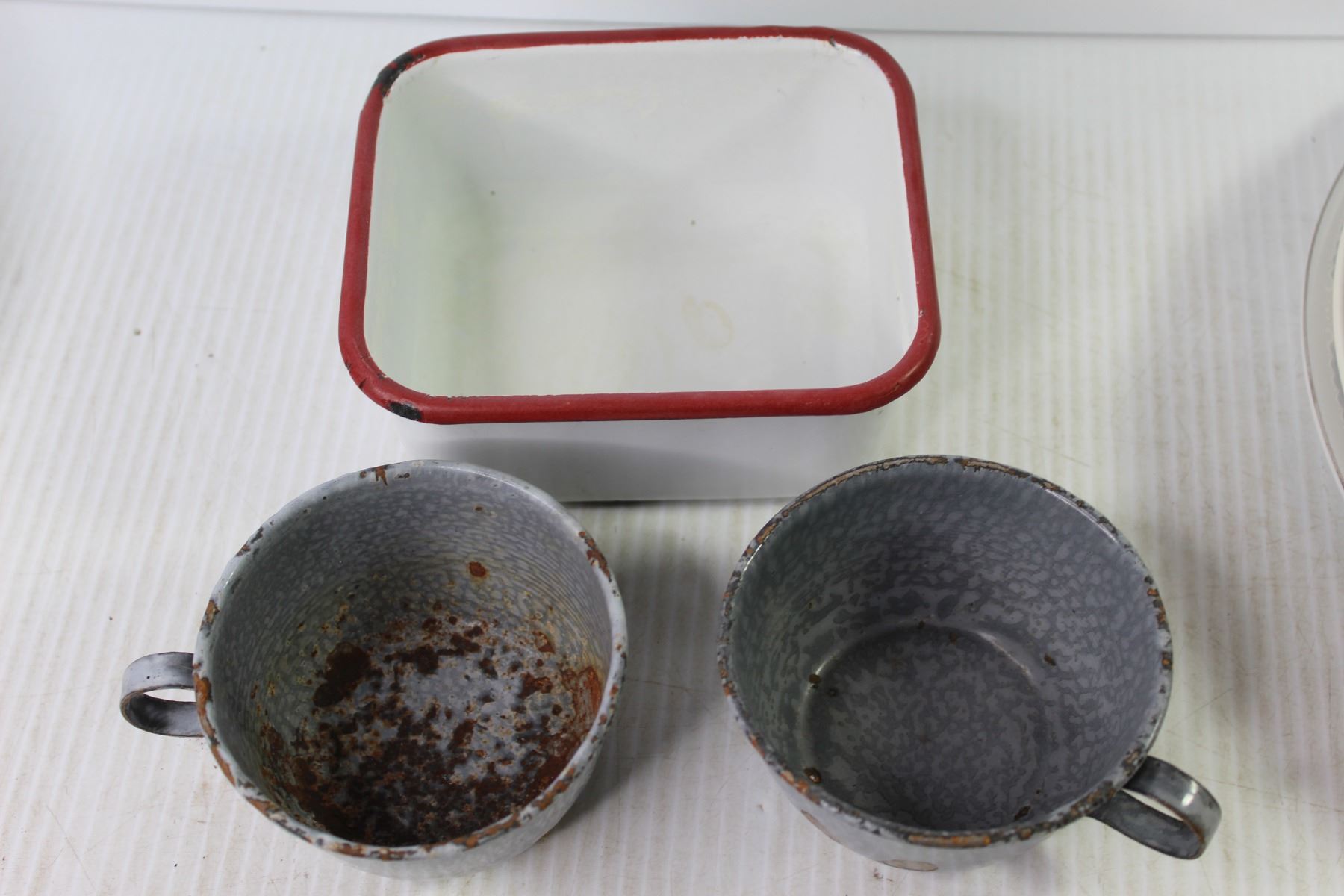 (2) Metal Plates - Plates - (2) Tin Cups - (2) Mugs (one is Pyrex)
