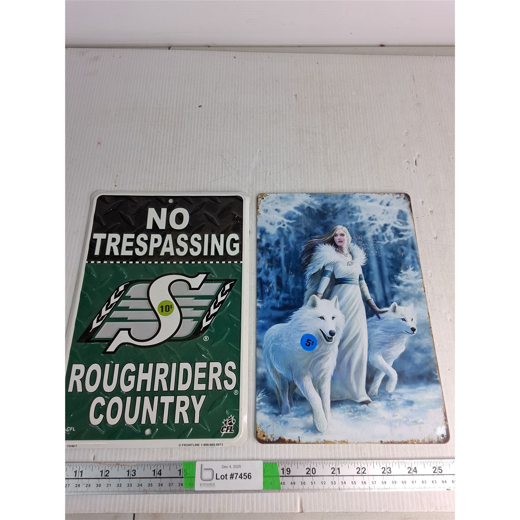 (2) Metal Sign- Roughriders, Wolf, 7.5  by 11.5