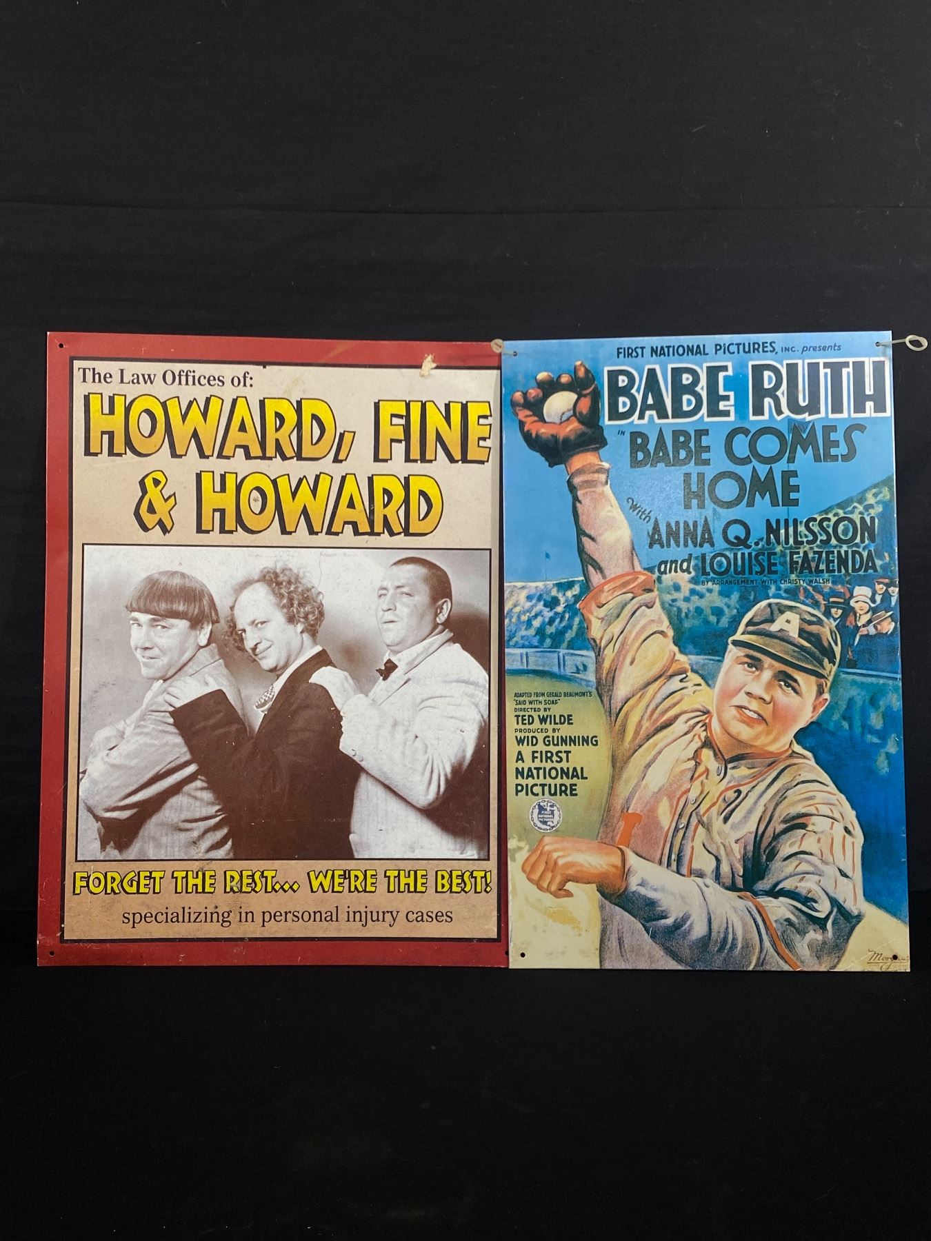 2 Metal Signs - Babe Ruth & 3 Stooges