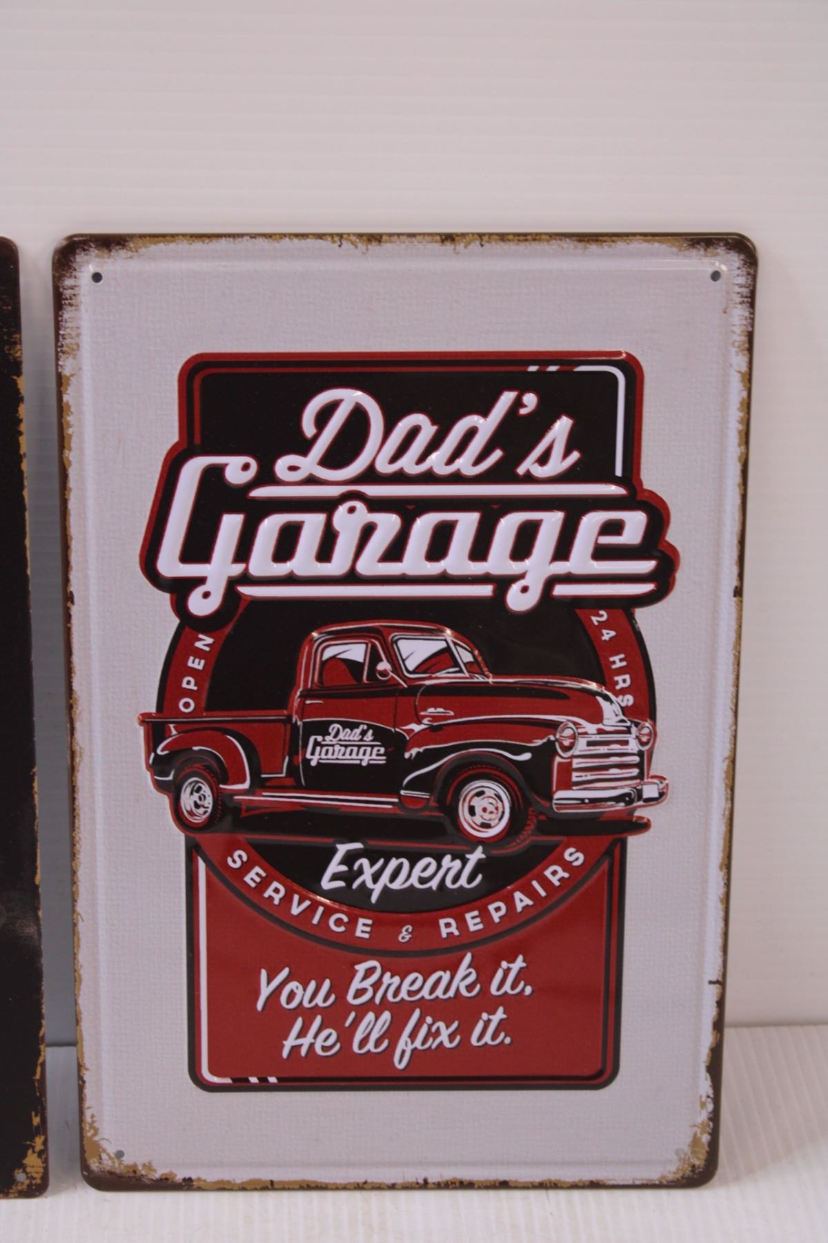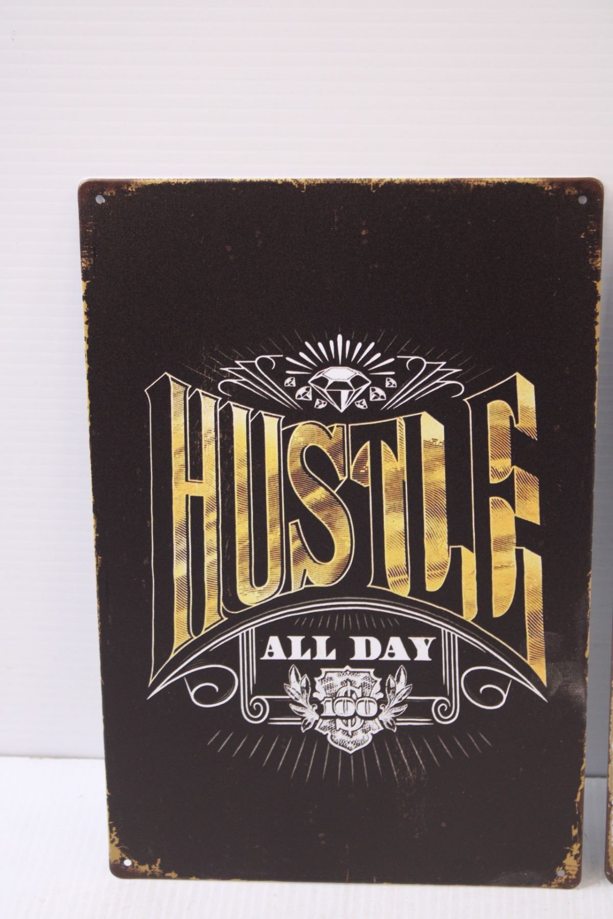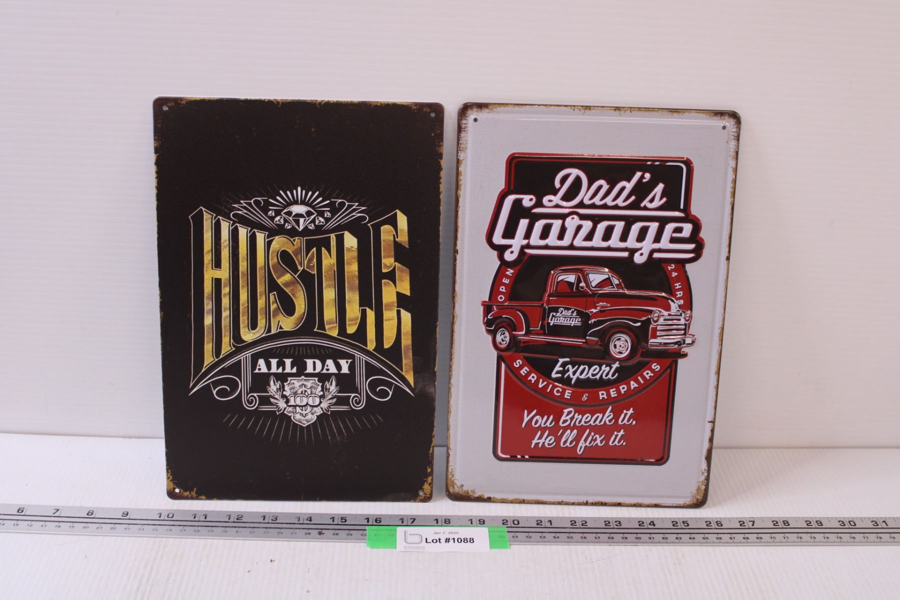 (2) Metal Signs: Hustle & Dad's Garage - 8" x 12"