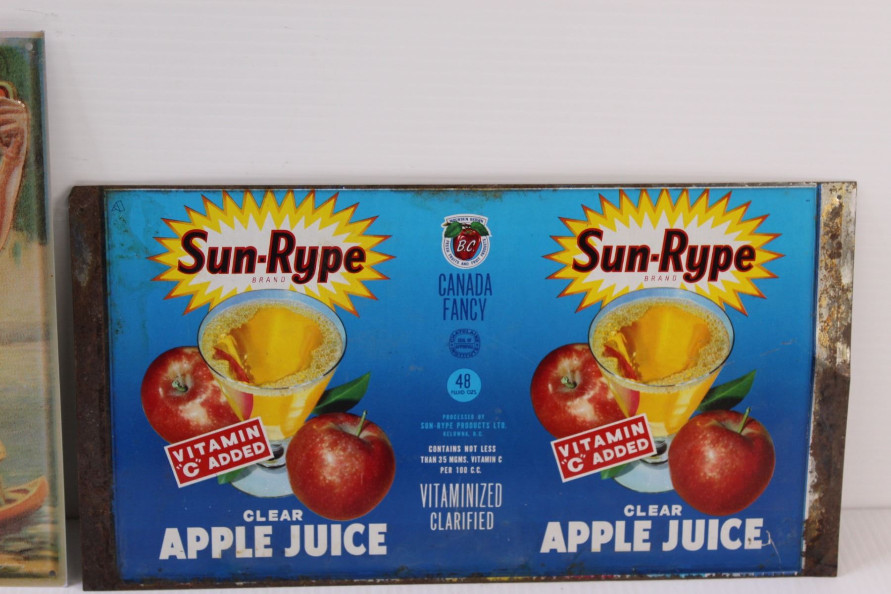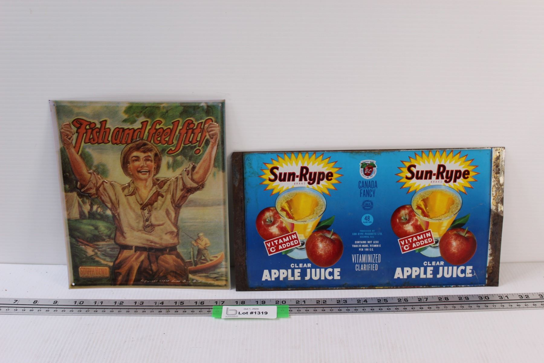 (2) Metal Signs: Sun-Rype (13" x 11") & Fishing (8" x 10")
