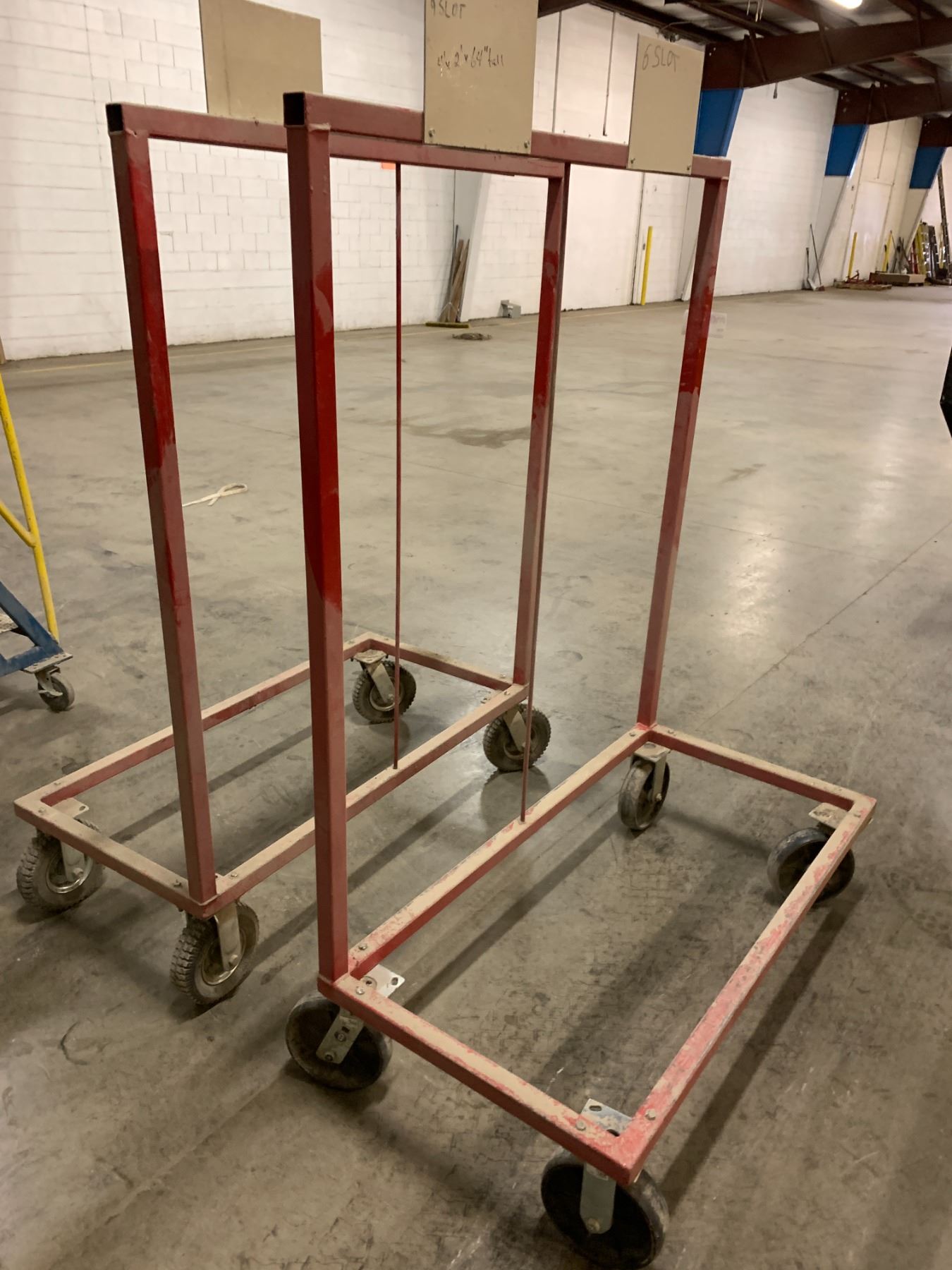 2 Metal Stands with Wheels - Purchaser is solely responsible for dismantling and removal of all lots. Lots 43, 44, 45, and 46 are to be removed first, Lots 1 - 42 are to be removed second all remaining lots removed after Lots 1 - 46.
