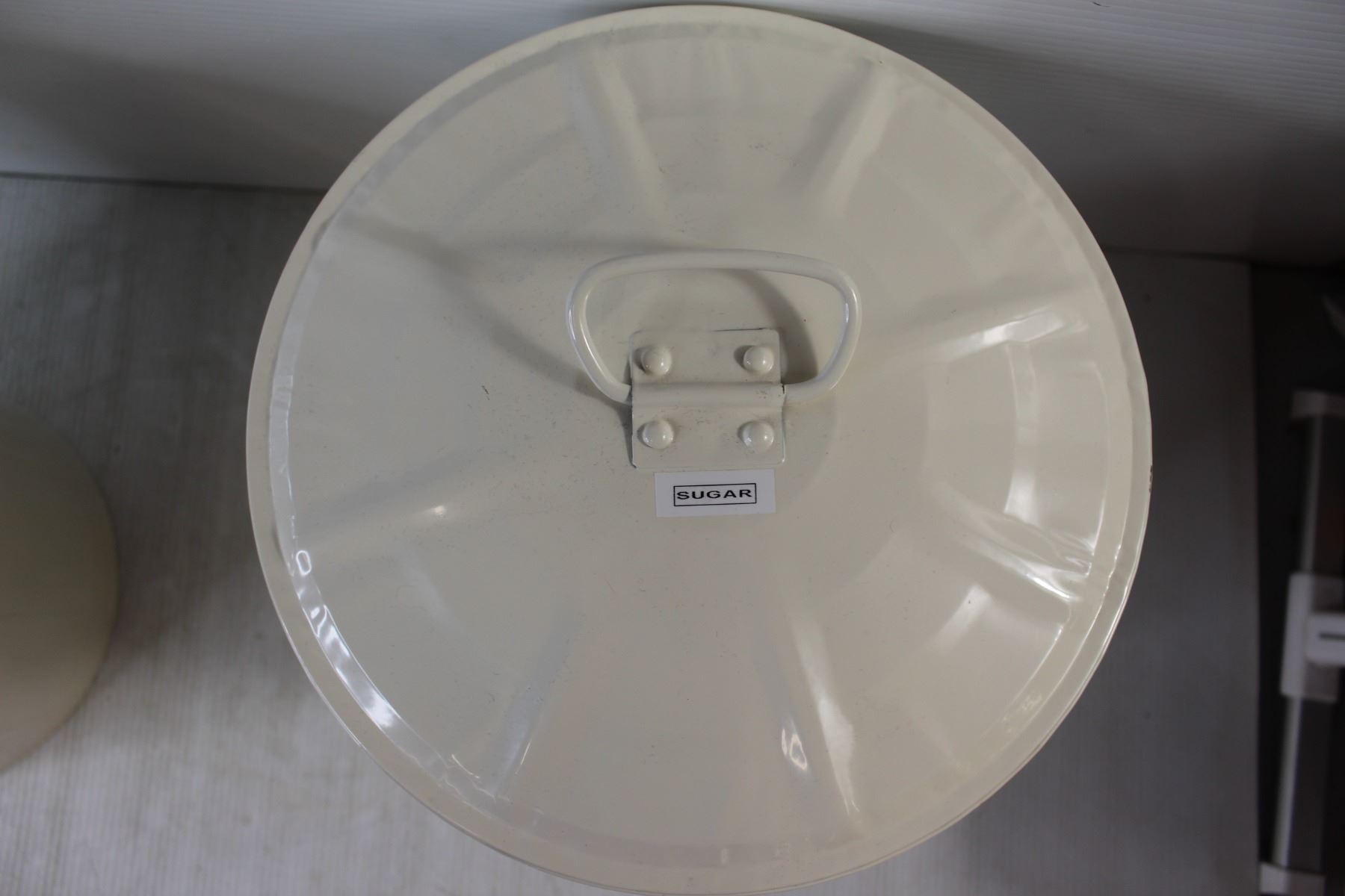 (2) Metal Storage Bins - Labeled Sugar and Flour