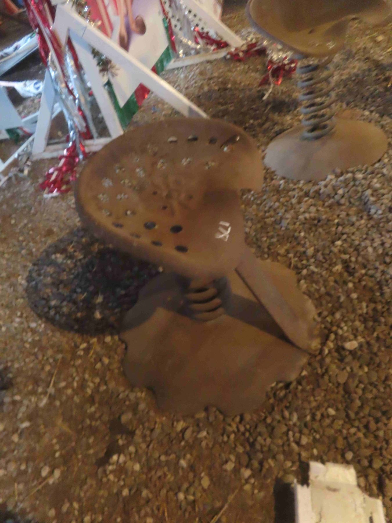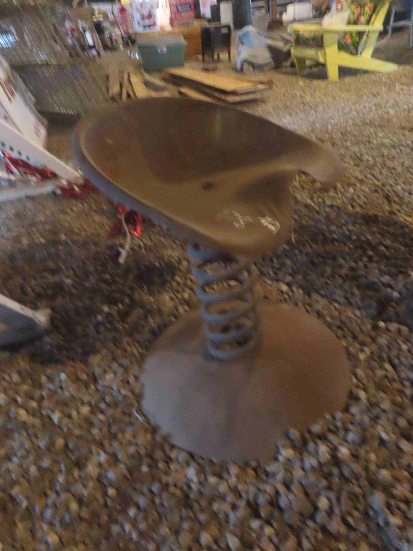 2 Metal Tractor Seat Stools - 1 Secure, 1 Loose