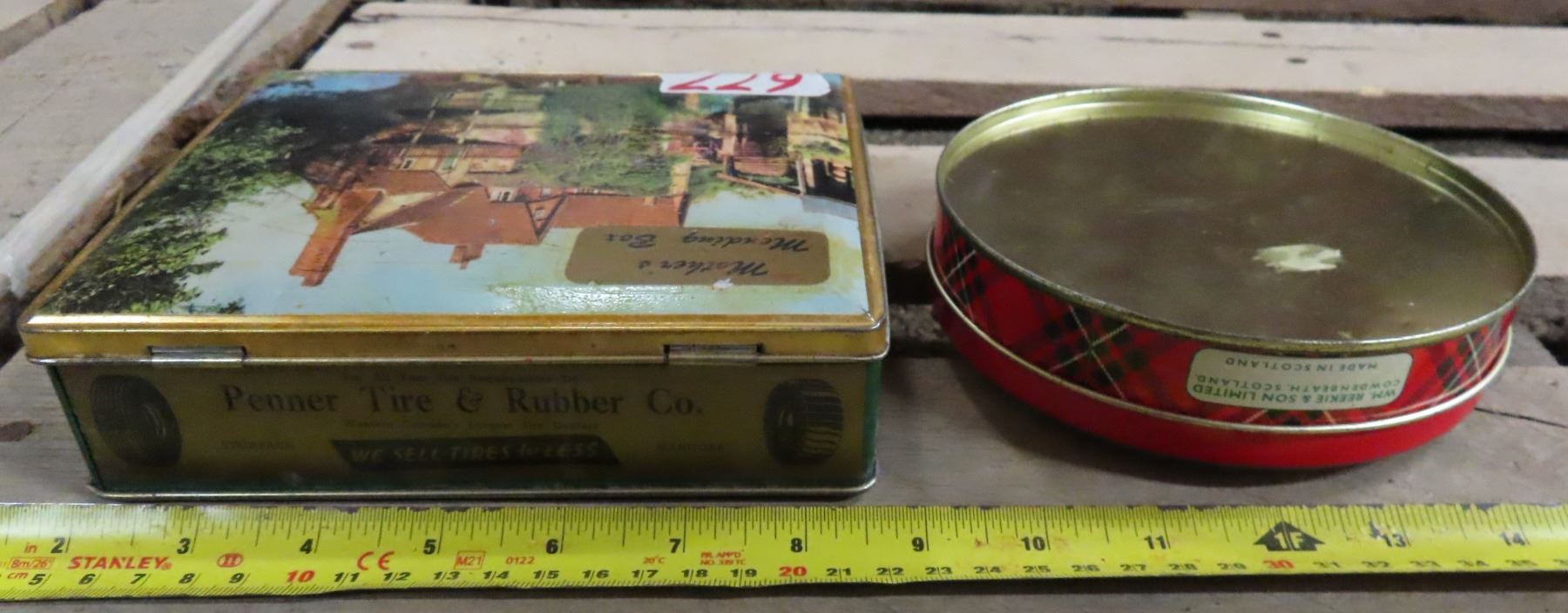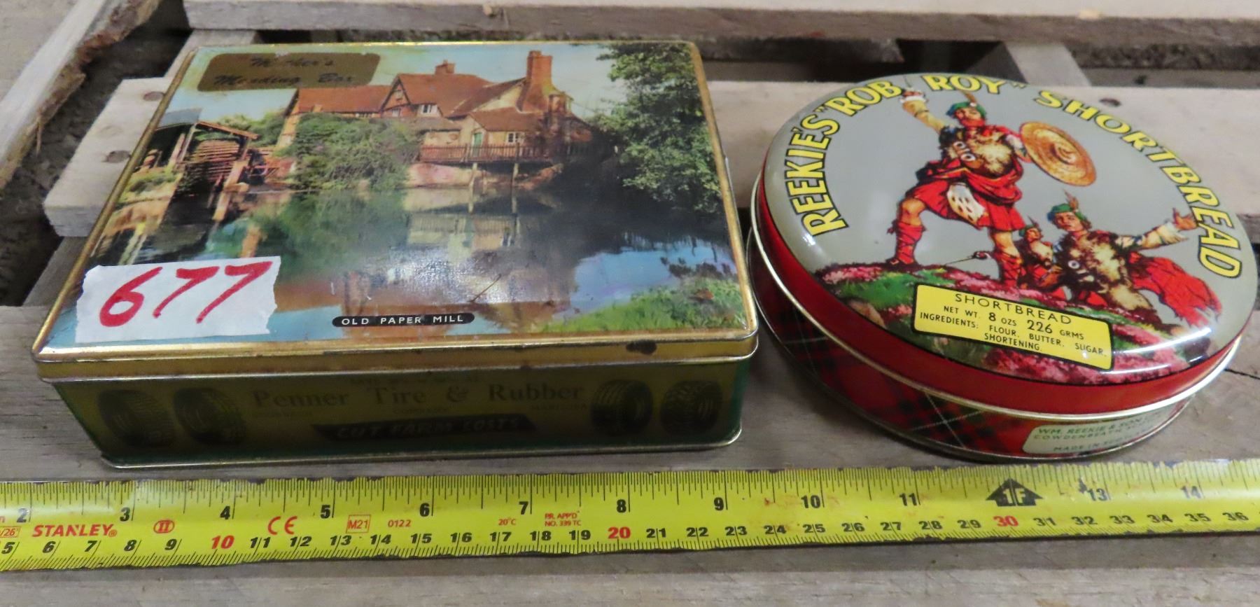 2 Metal tins - Reekie's "Rob Boy" Shortbread, & Penner tire & Rubber Co