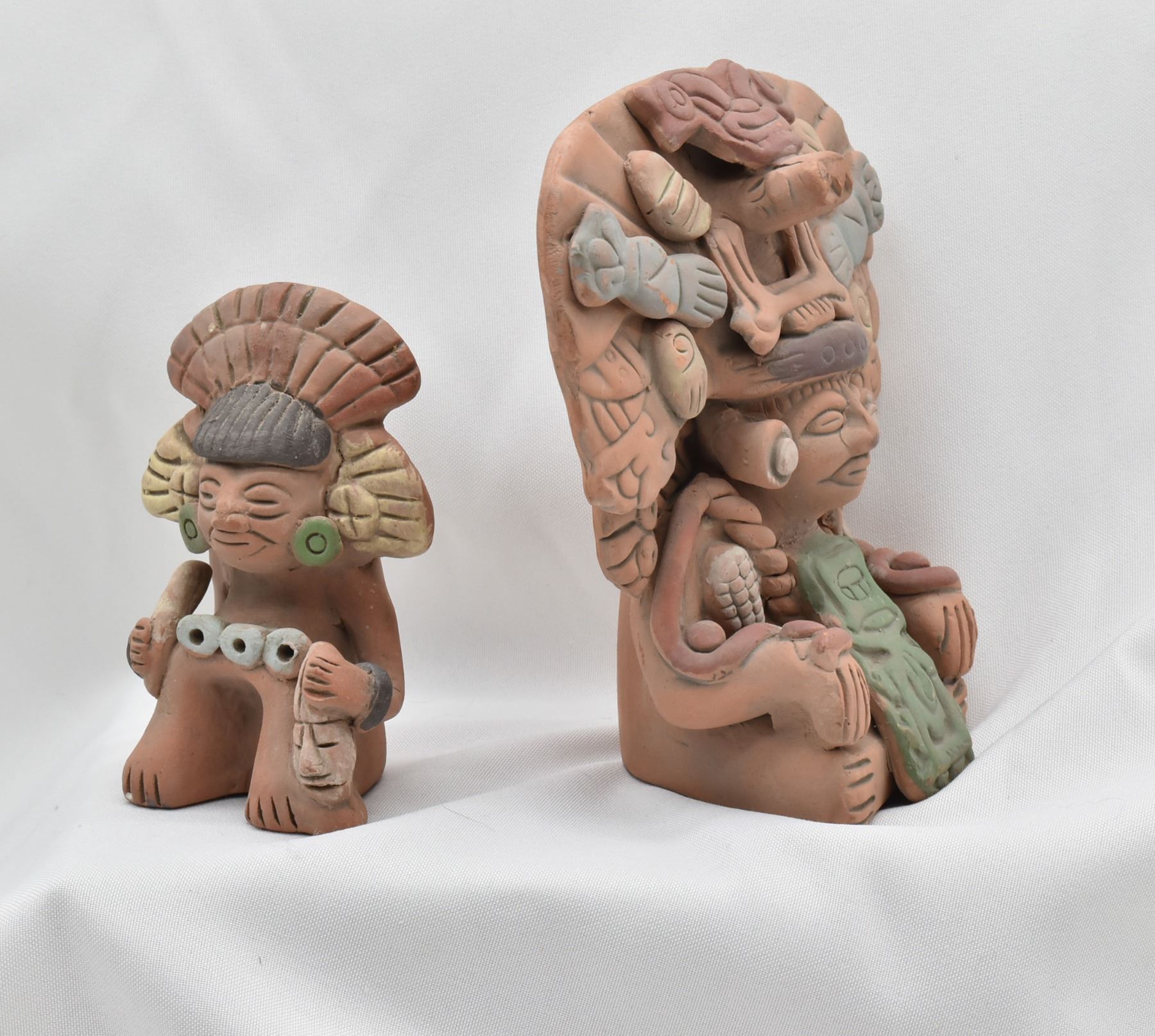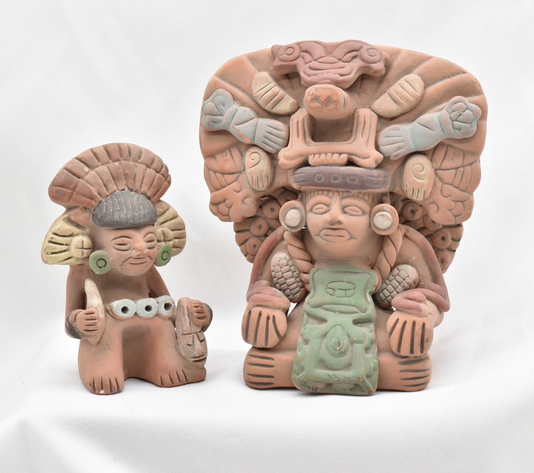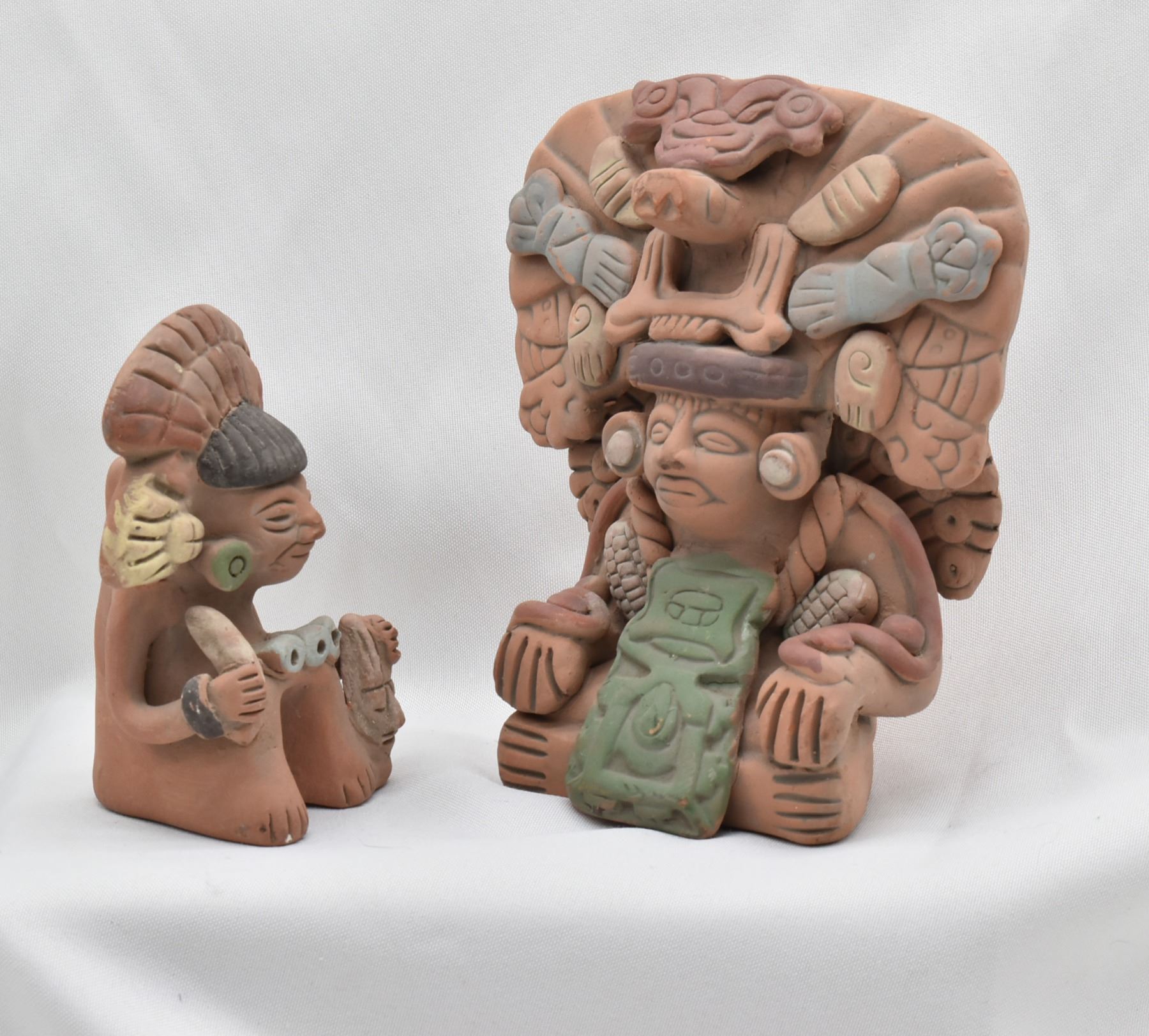 2 Mexican Pottery Mayan God Replicas, largest measures 6'' x 7'' x 3''