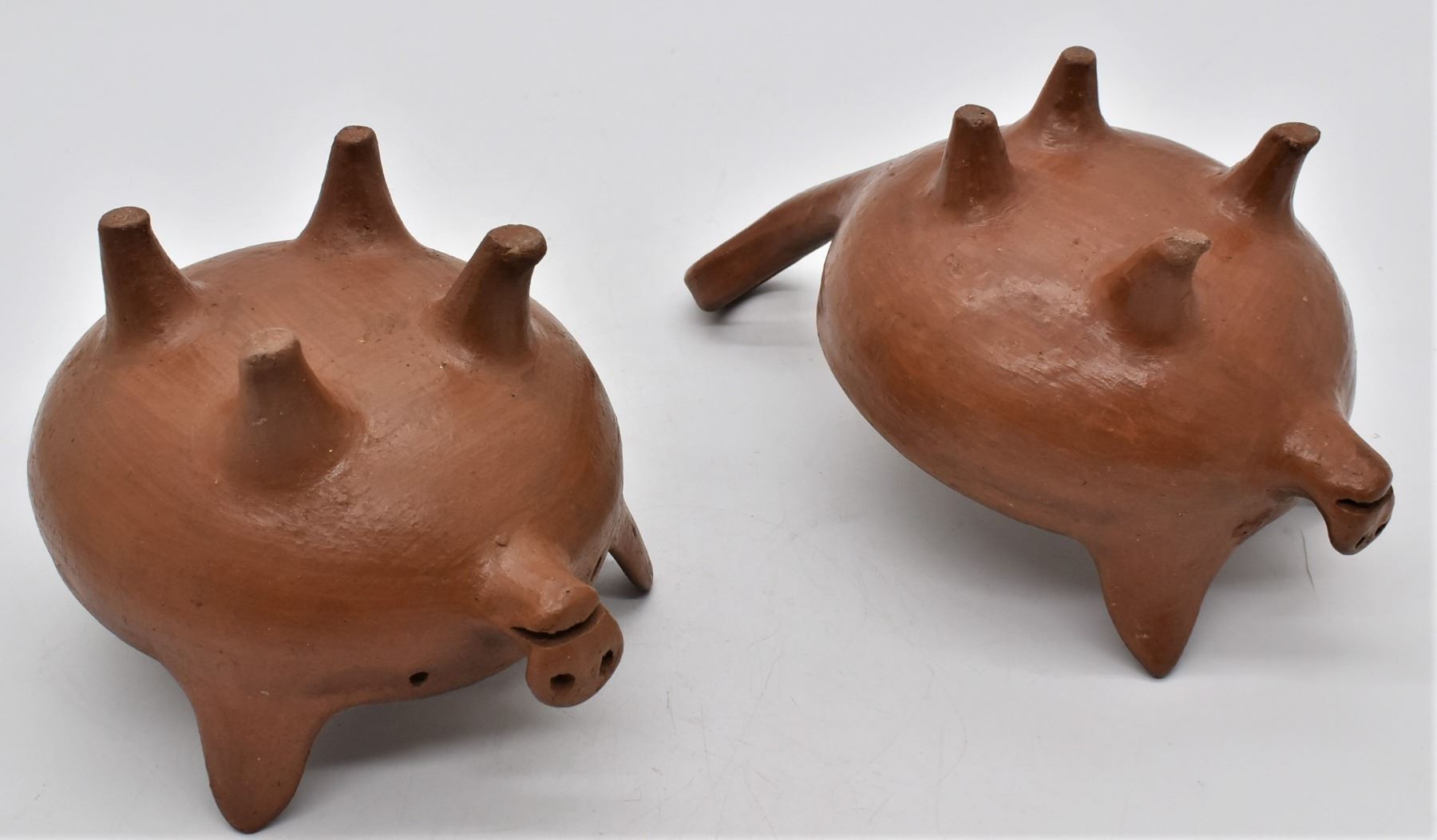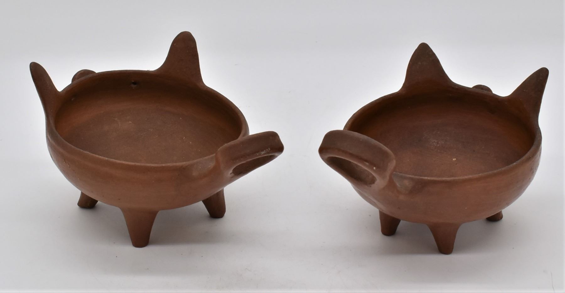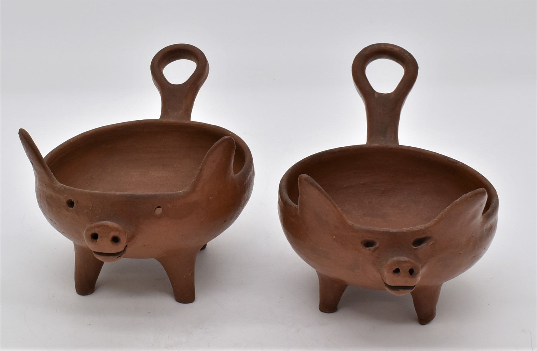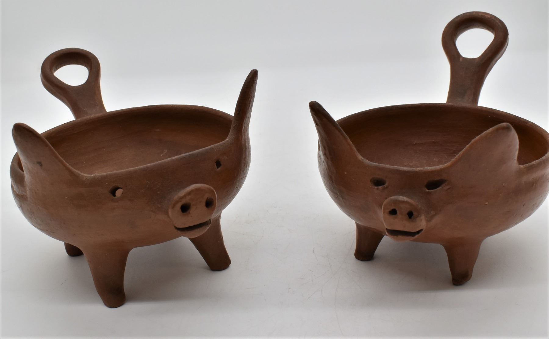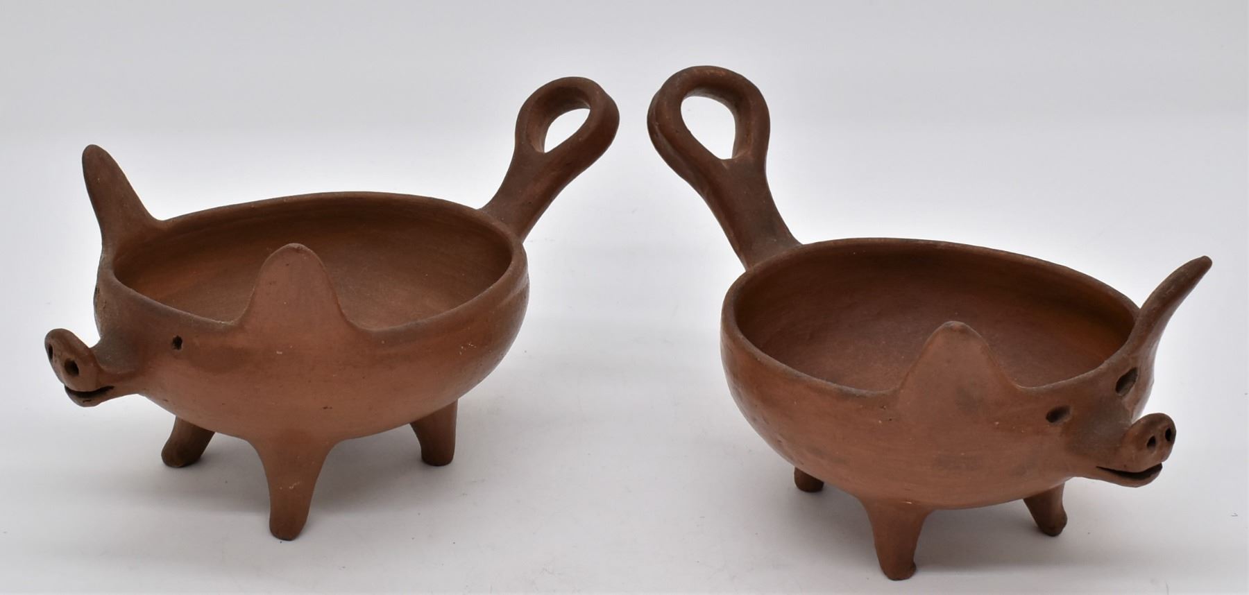 2 Mexican Redware Pottery Pigs Bowls, largest measures 5'' x 9''