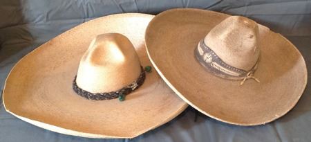 Ca. 1940s, Pair of traditional ranchero sombreros. Brims 23" & 19"