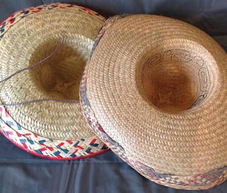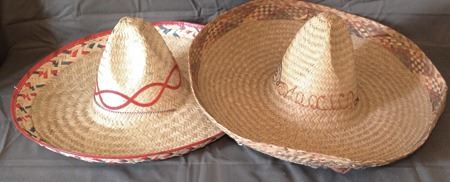 Ca. 1960s, Pair of colorful woven high crown tourist sombreros. Brims 22" & 17"
