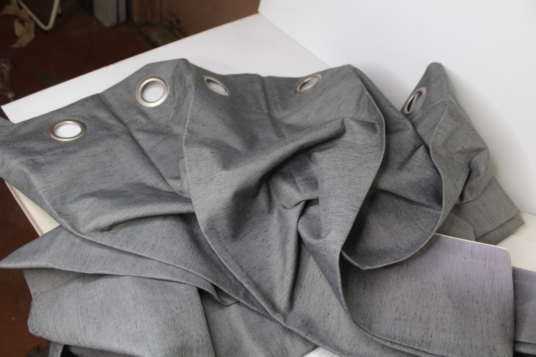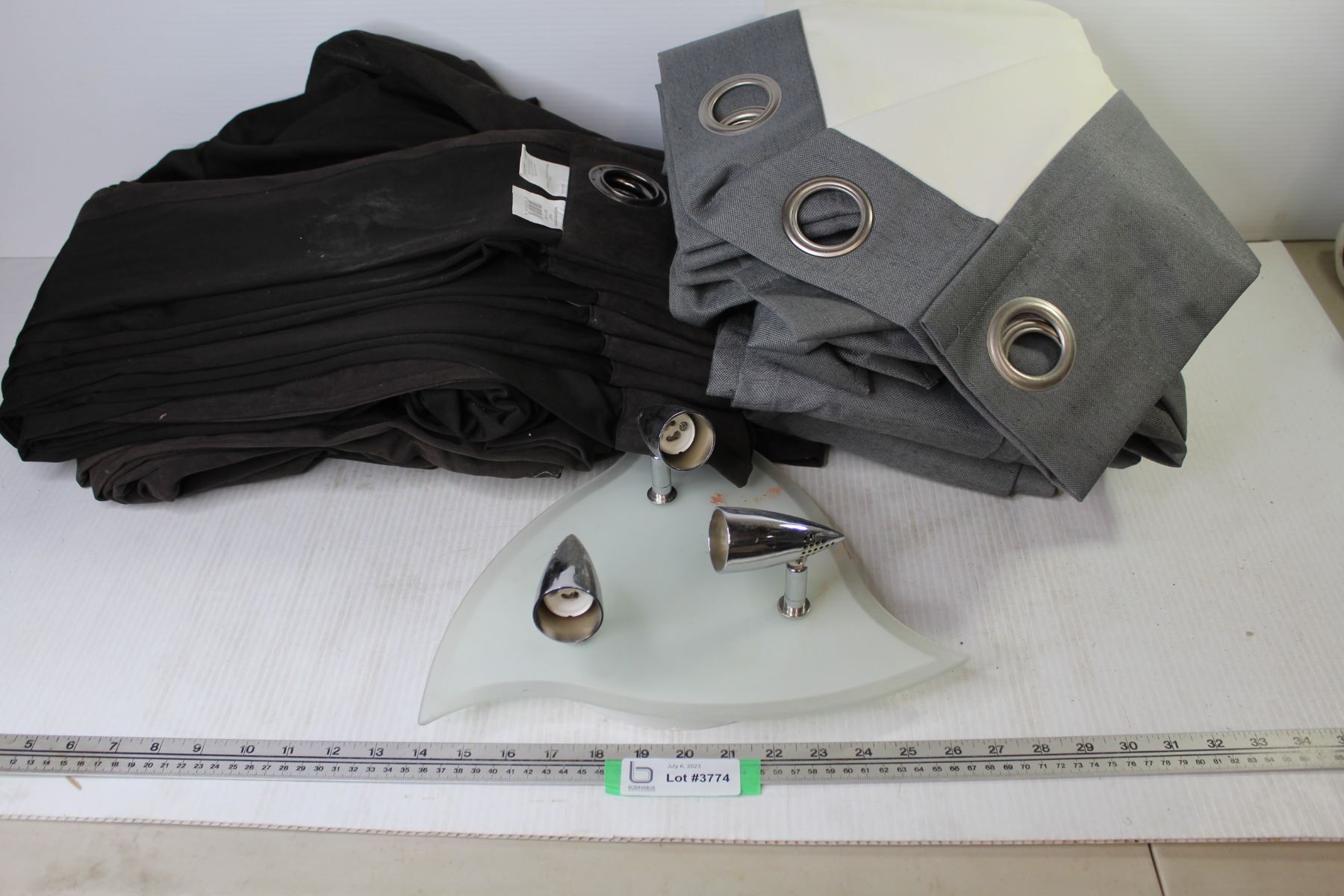 (2) Micro Suede Drape Panels ( 54" x 84") - (4) Grey Drape Panels (unknown size) - Glass & Chrome Light