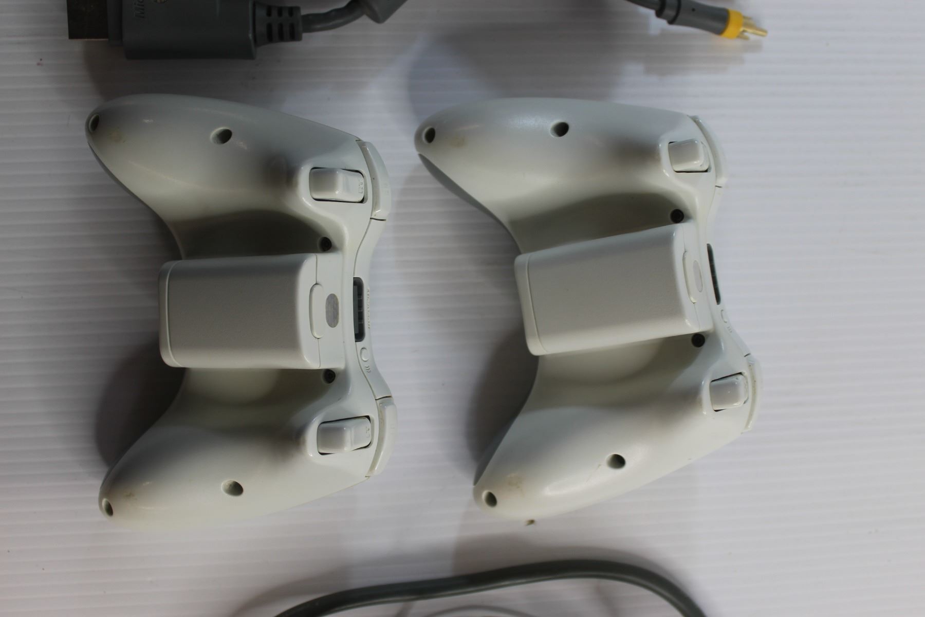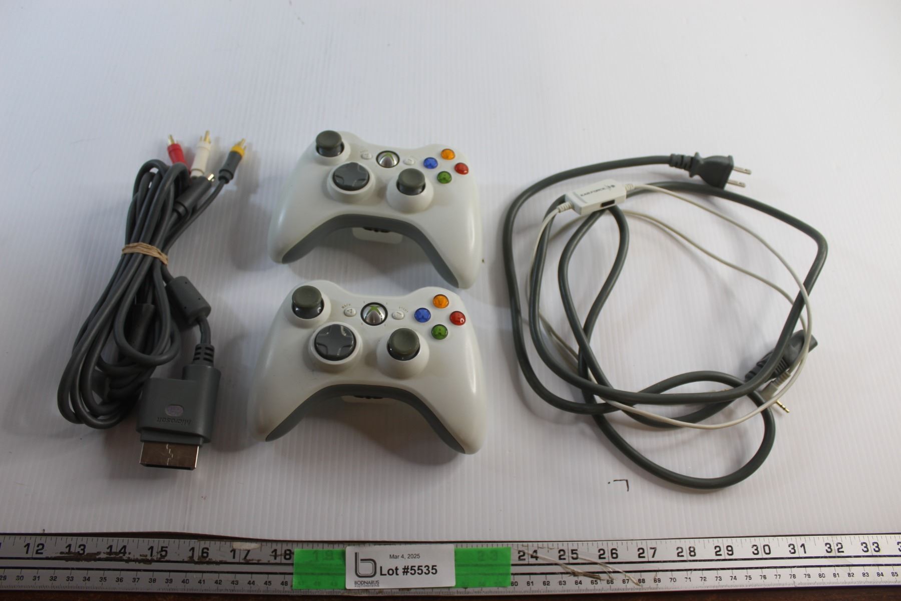 (2) Microsoft Xbox 360 Wireless Controllers and Assorted TV & Power Cables - As Is
