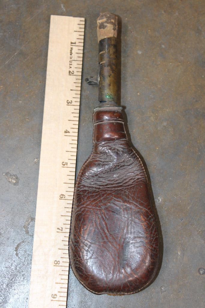 (2) Mid 1800s Powder Flasks and (1) 1800s Leather Shot Flask (ONE$)