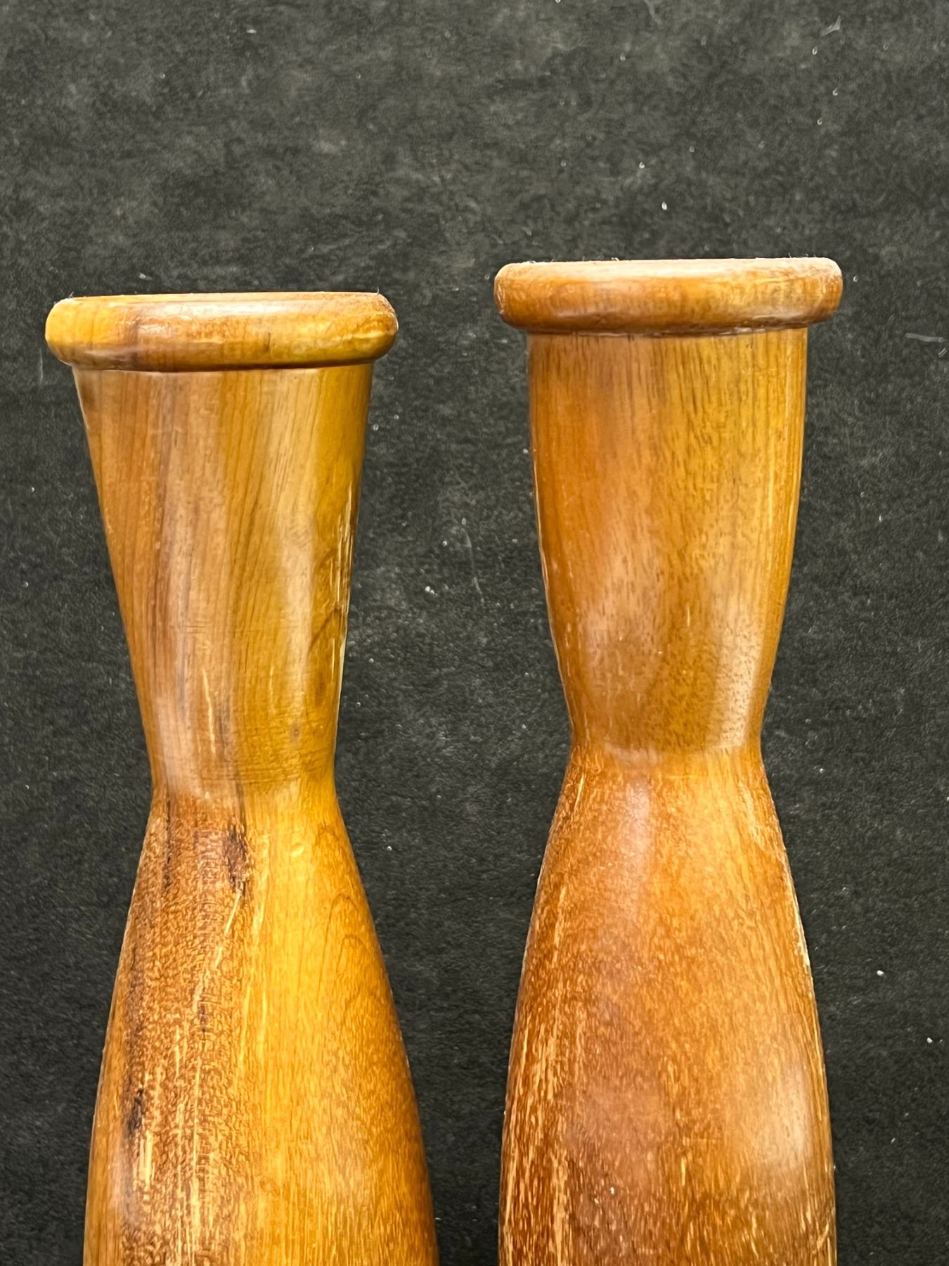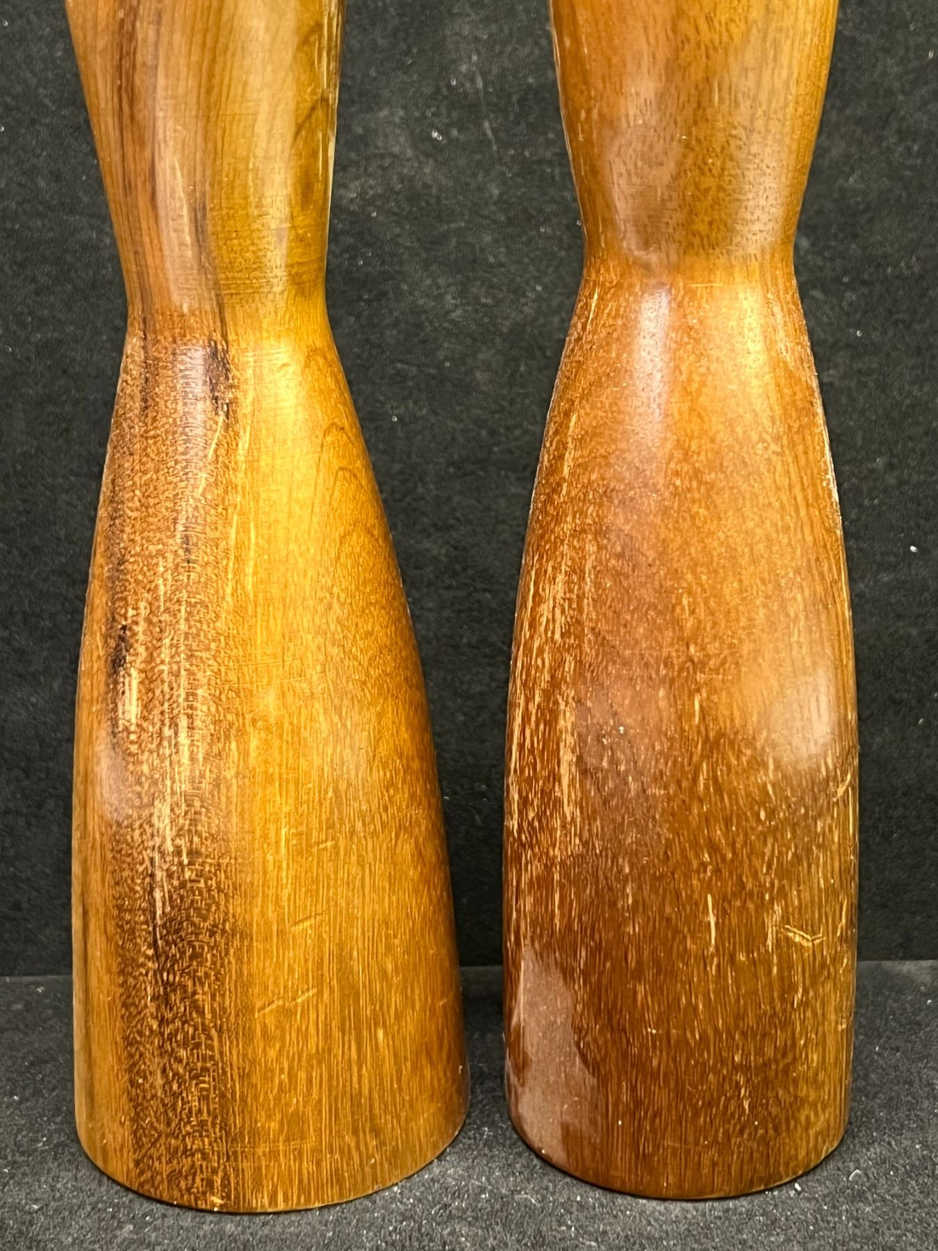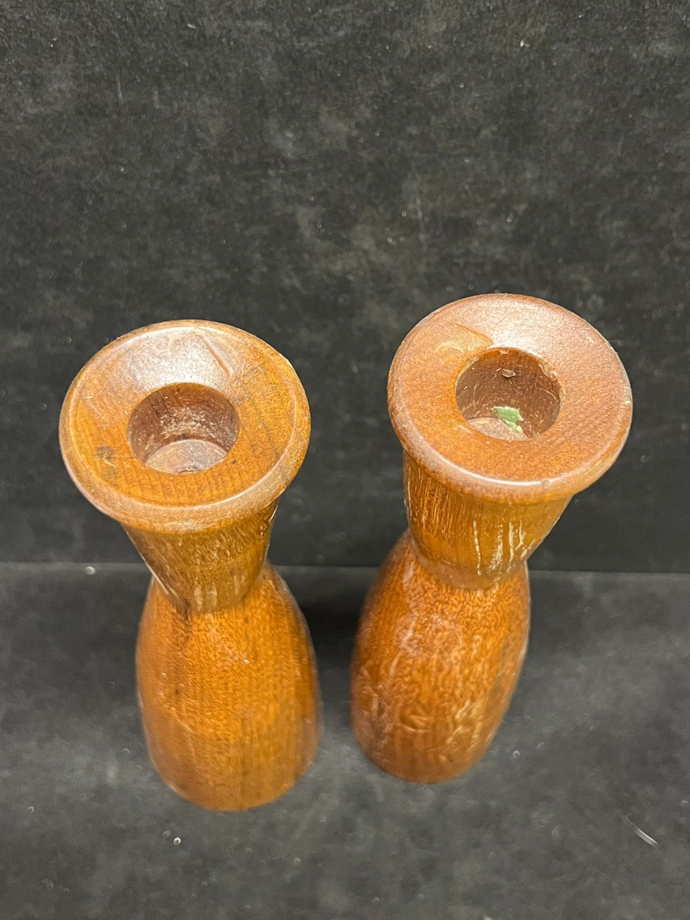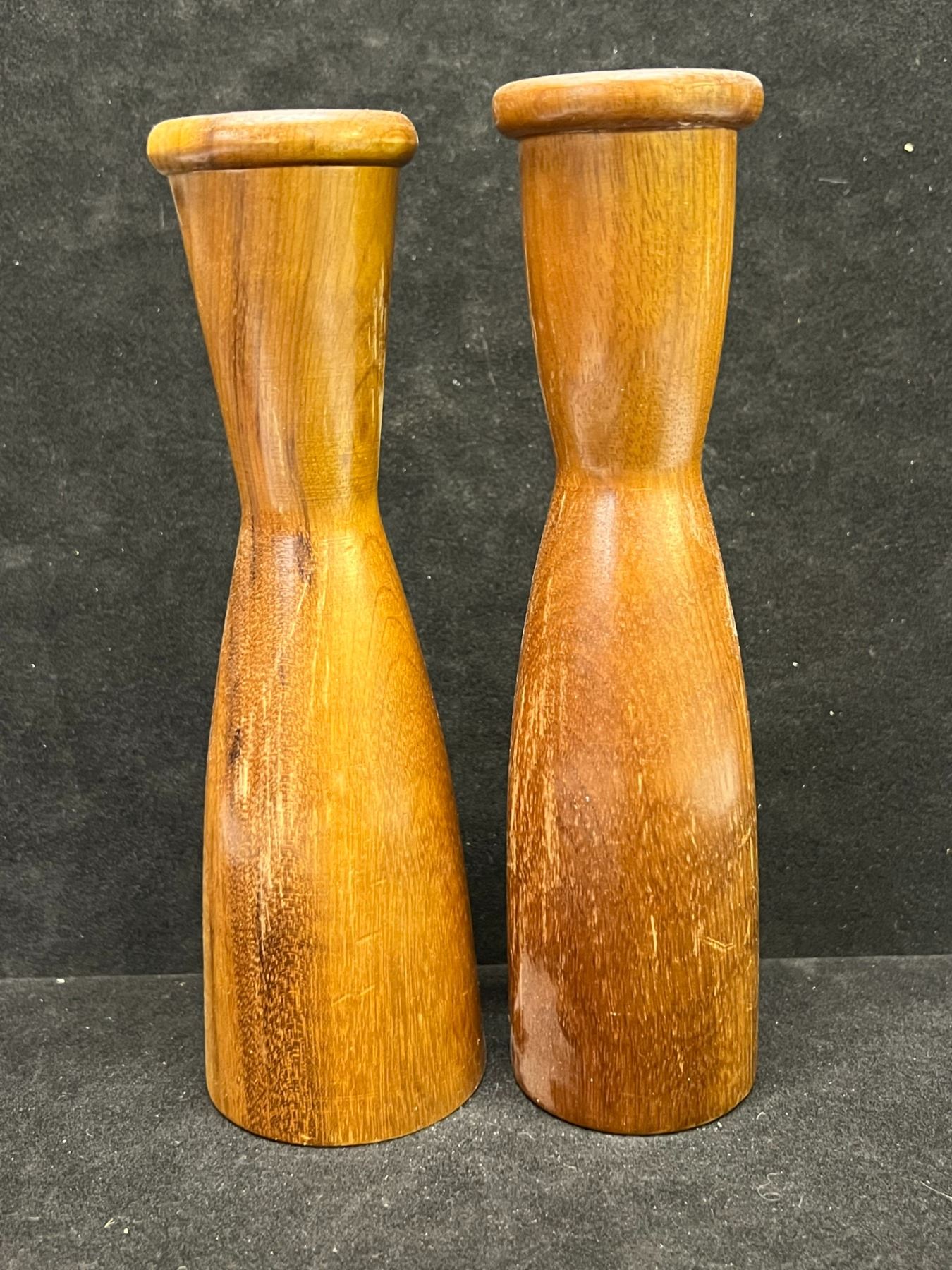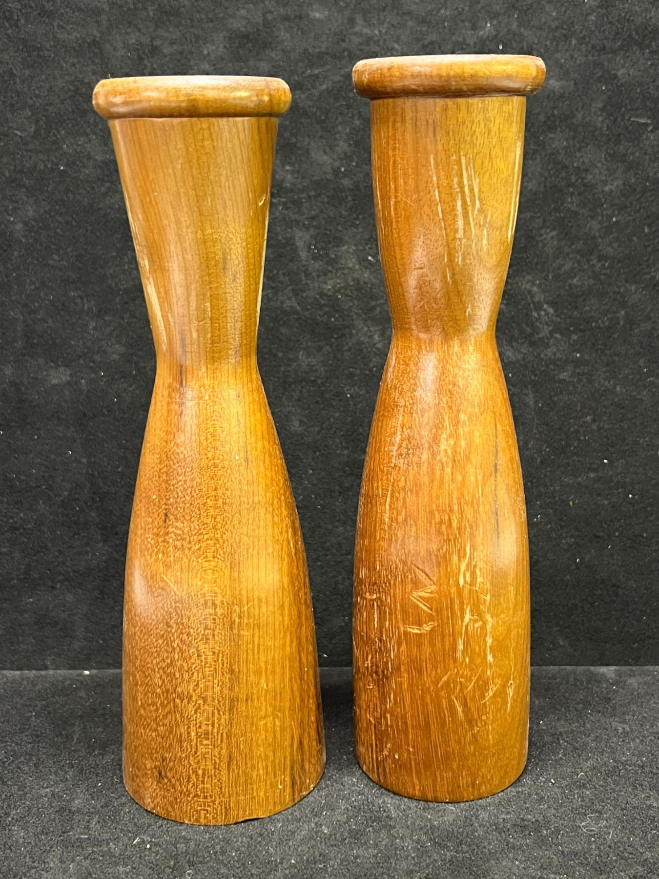 2 Mid Century Wooden Candle Holders (taller Approx: 7"T 1.75"W