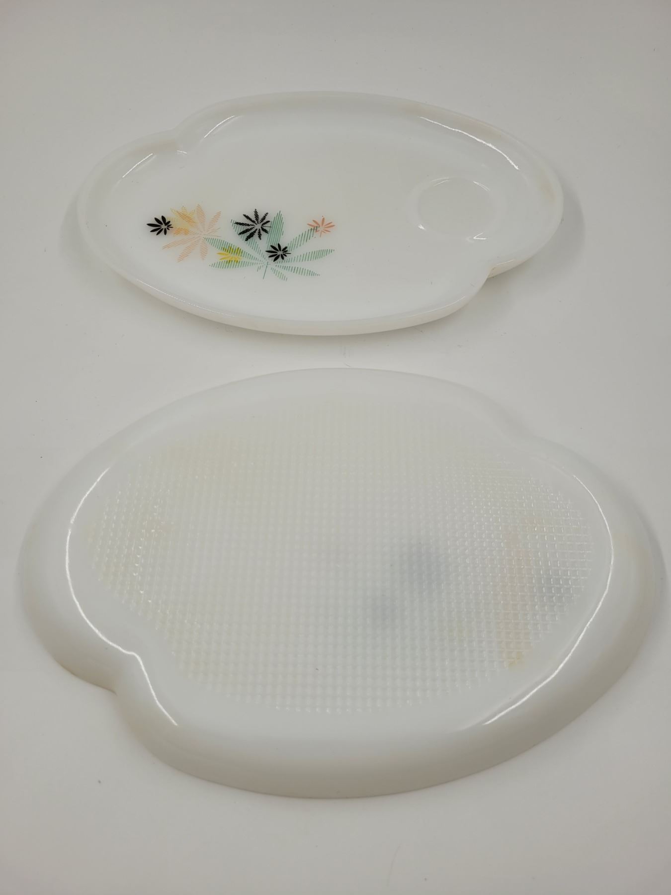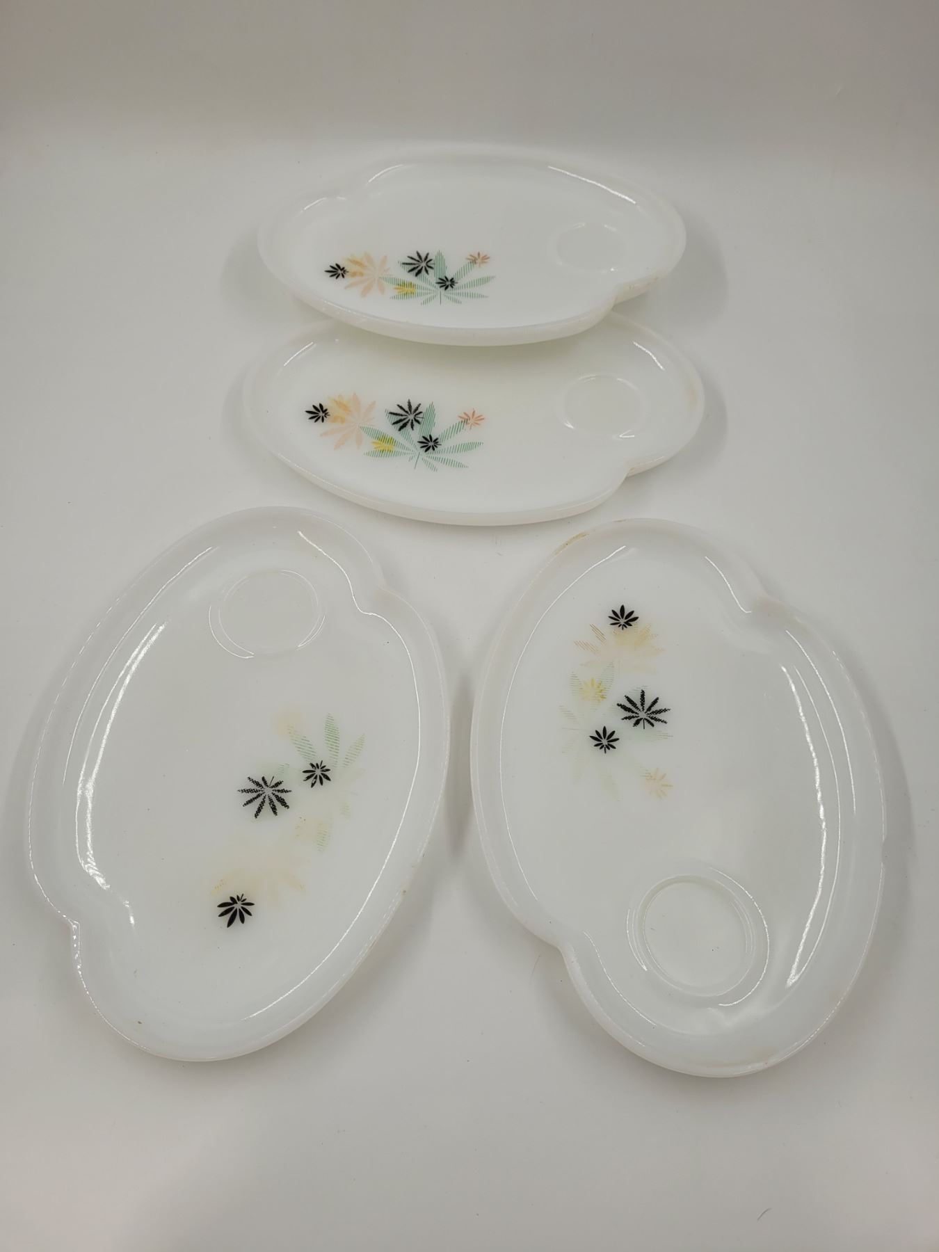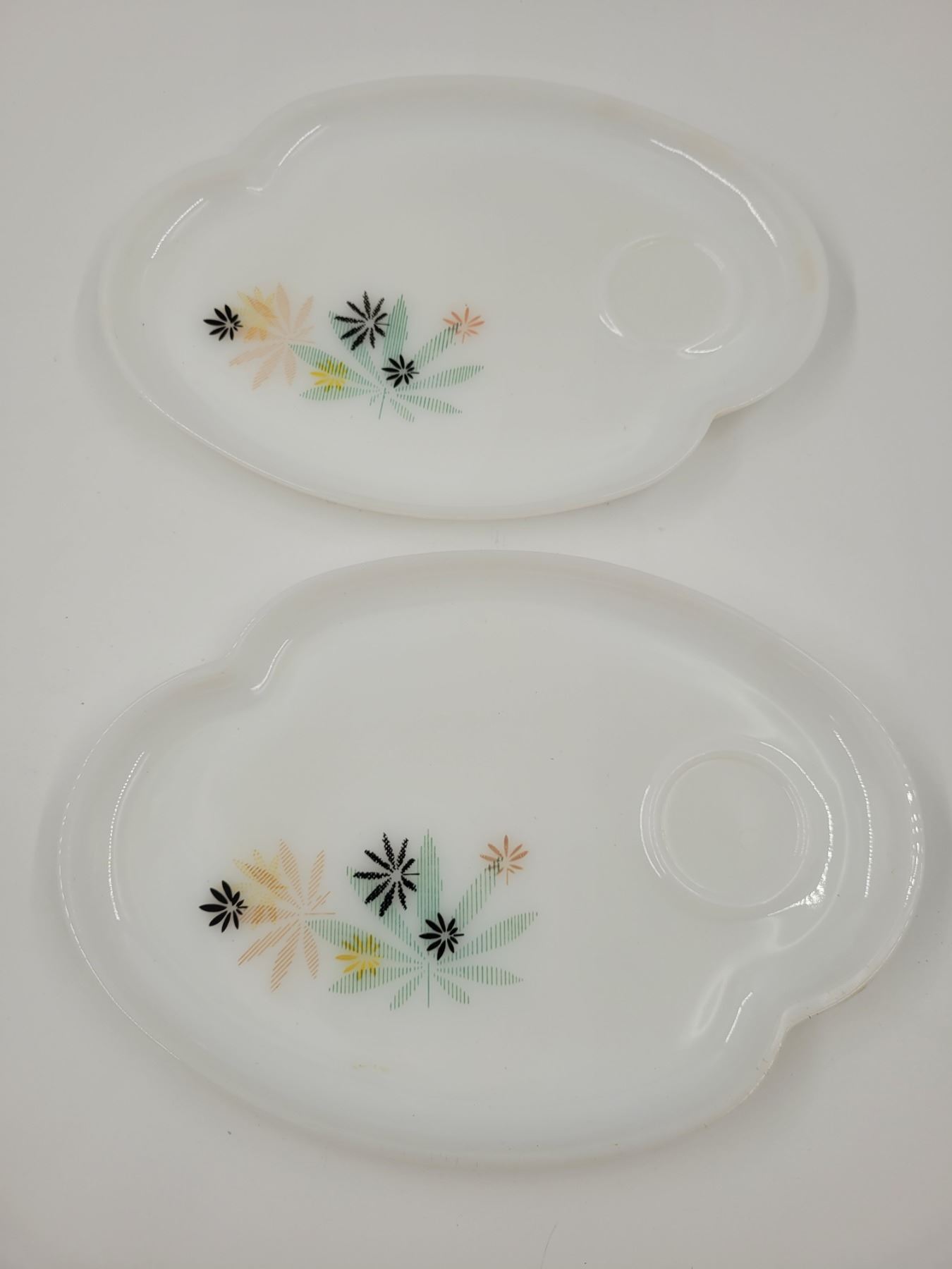 2 Milk Glass Atomic Flower Snack Plates
