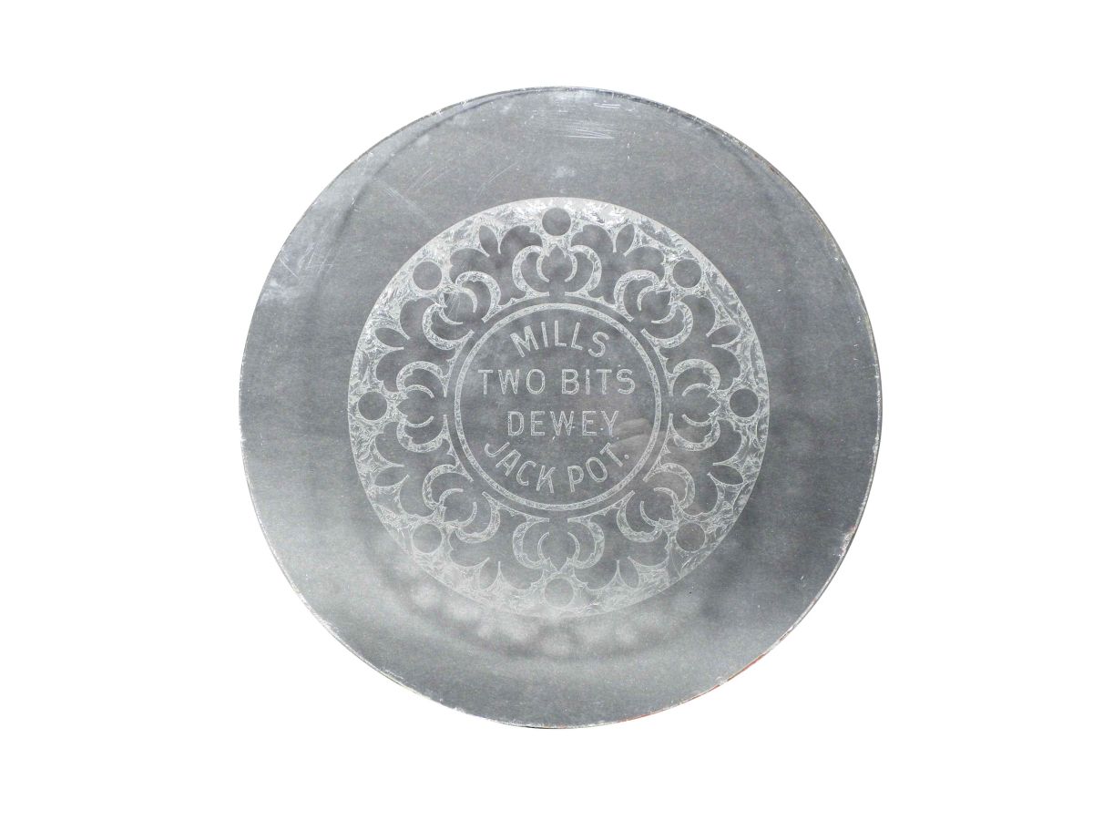 Two Mills Dewey Jackpot Upright-etched glass windows only. 18 inch diameter.