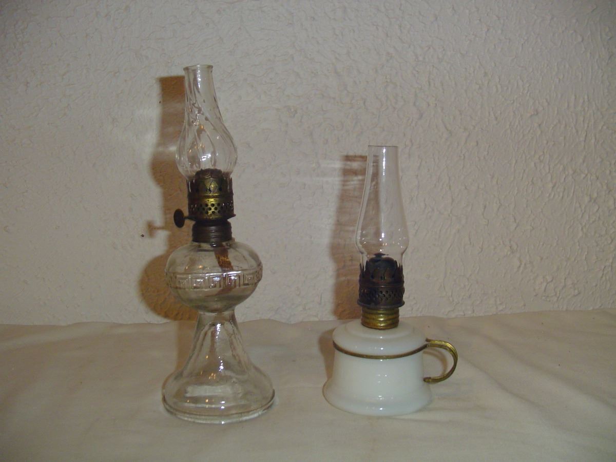 2 Miniature Coal Oil Lamps Greek Key And Nutmeg