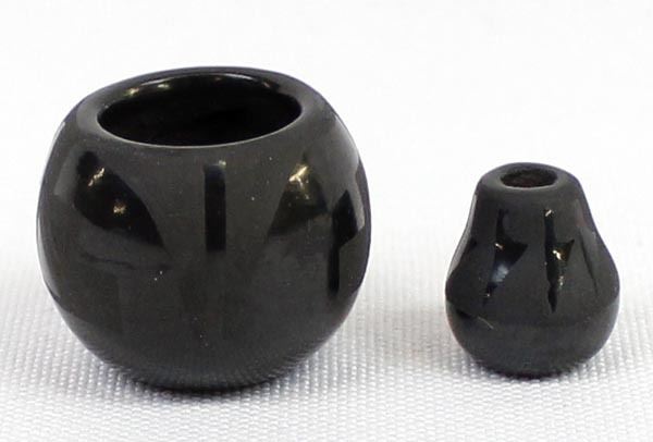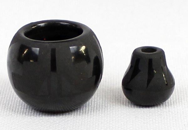 2 Miniature Santa Clara Pottery Jars Largest measures 1" x .75"