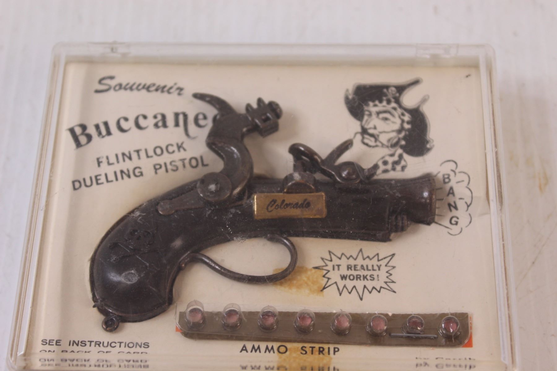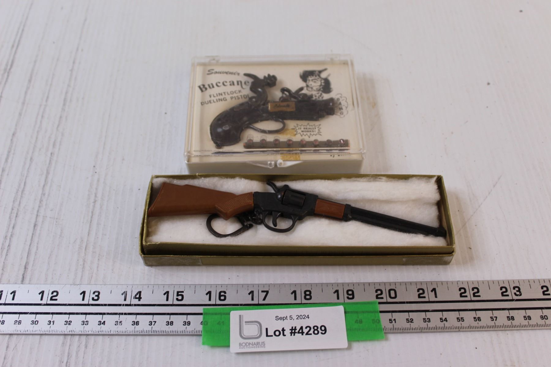 (2) Miniature Toy Guns: S.D.S Rifle Key Chain & Buccaneer Dueling Pistol in Case