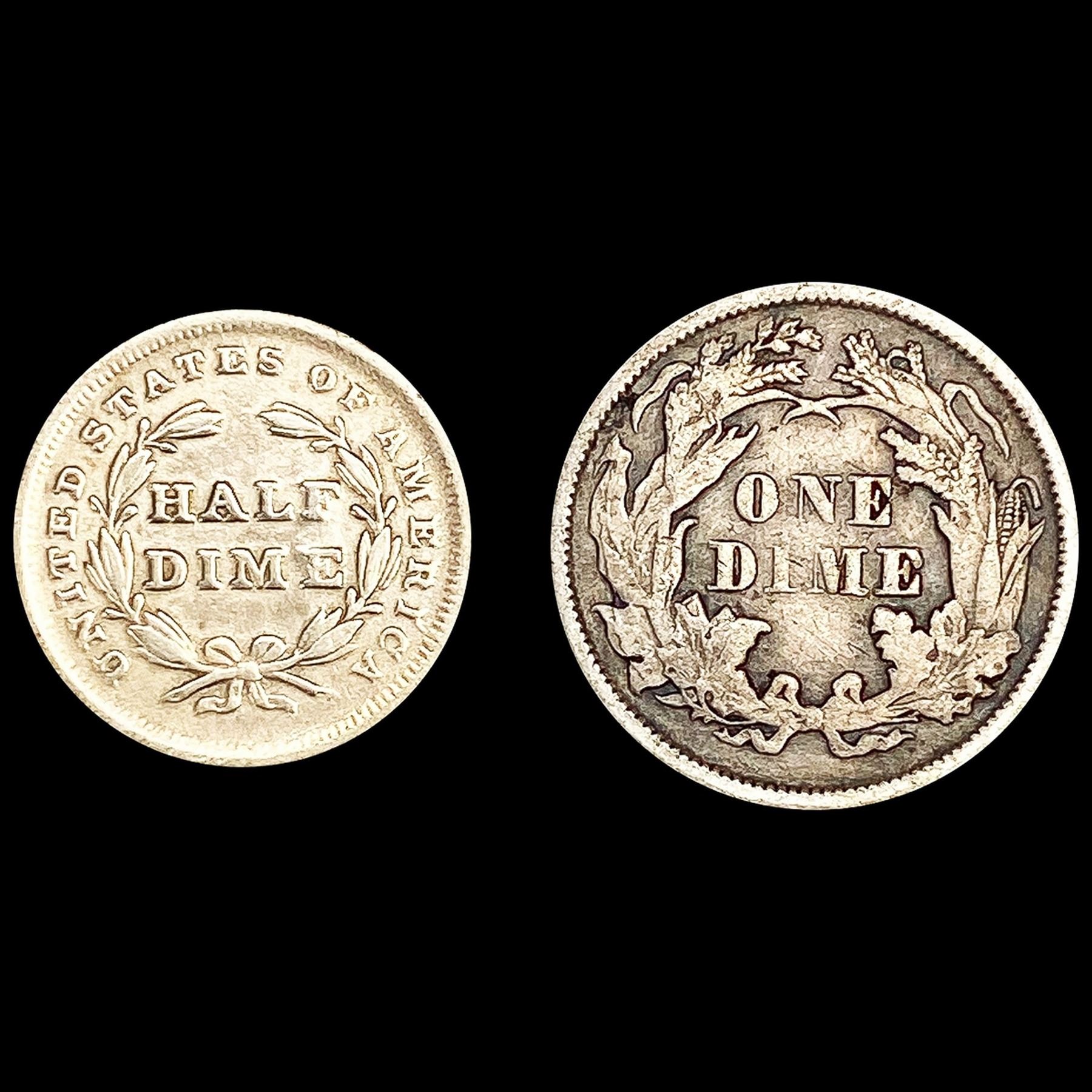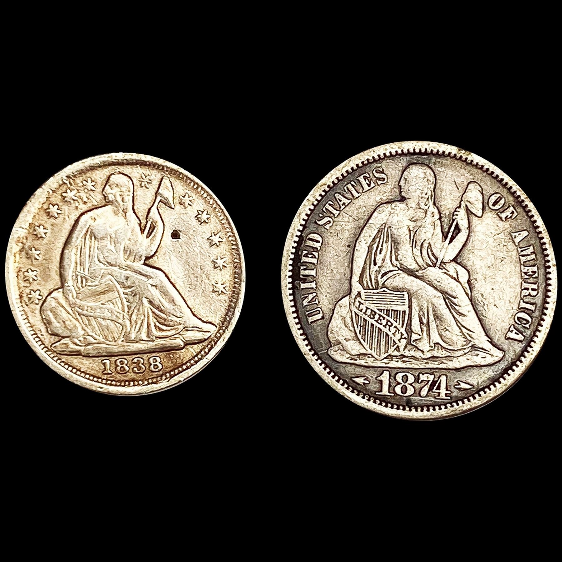 (2) Misc Seated Liberty (1838, 1874) NICELY CIRCU